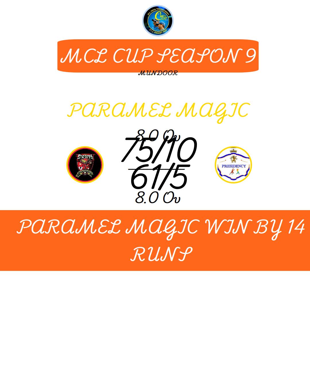 PARAMEL MAGIC WIN BY 14 RUNS