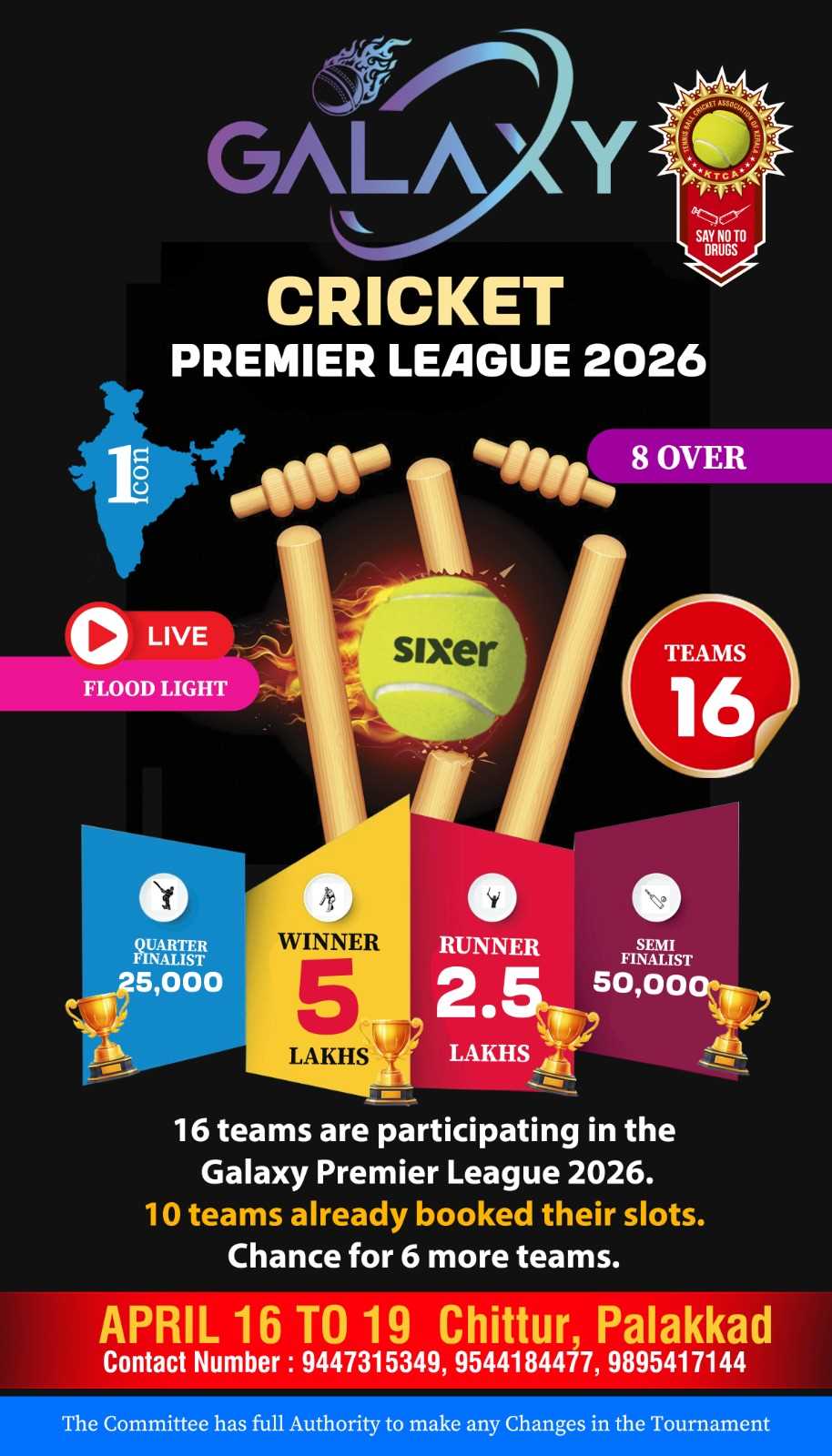 Start Date : 03-Apr-2025 , End Date : 06-Apr-2025. Akk cricket ground pallickal, Alappuzha |