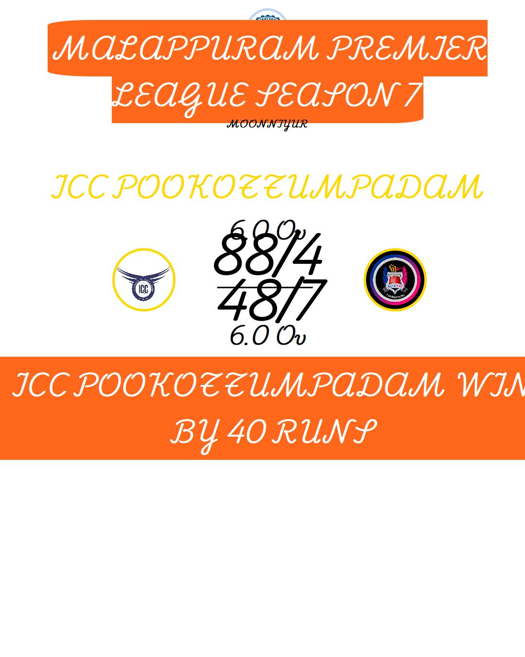 ICC POOKOTTUMPADAM WIN BY 40 RUNS