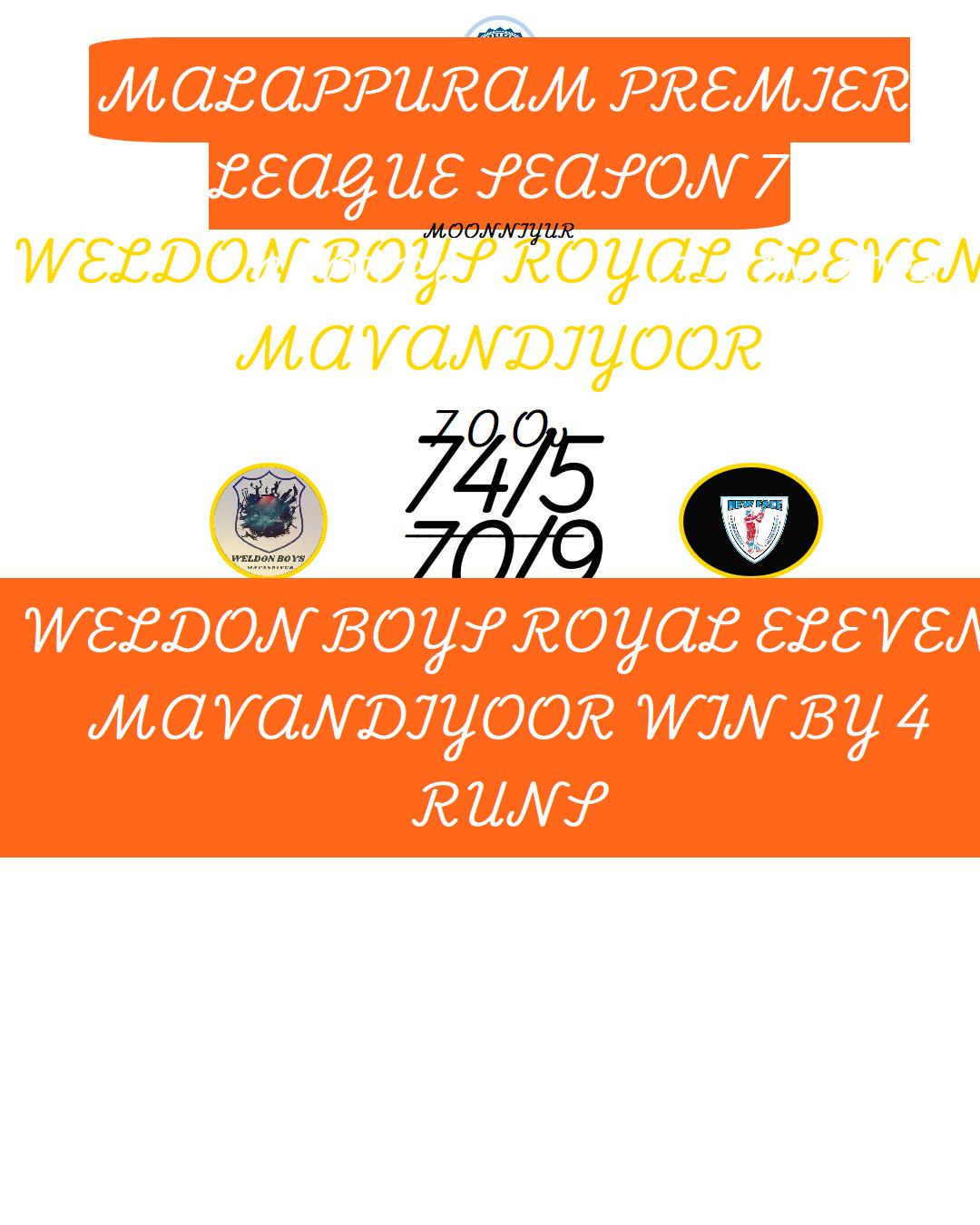 WELDON BOYS ROYAL ELEVEN MAVANDIYOOR (MALAPPURAM PREMIER LEAGUE SEASON 7) MATCHES