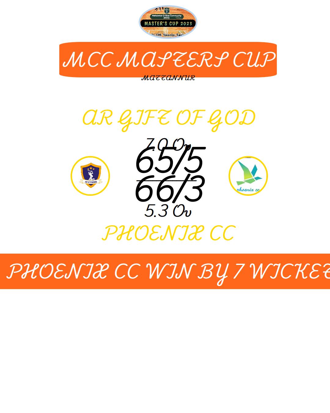 AR GIFT OF GOD (MCC MASTERS CUP) MATCHES
