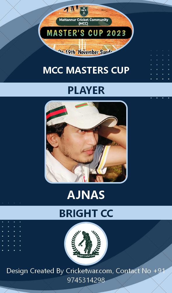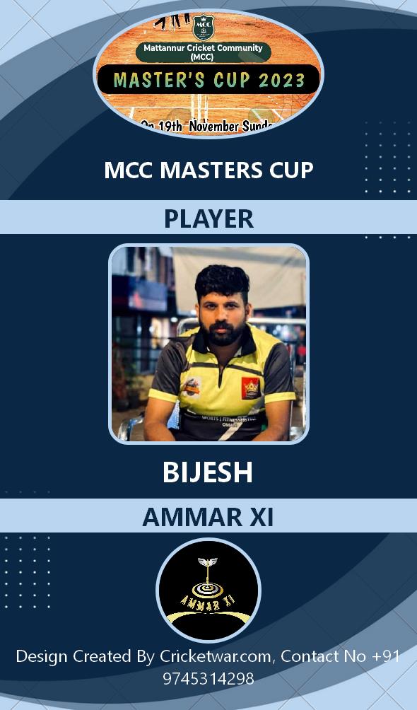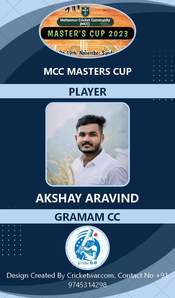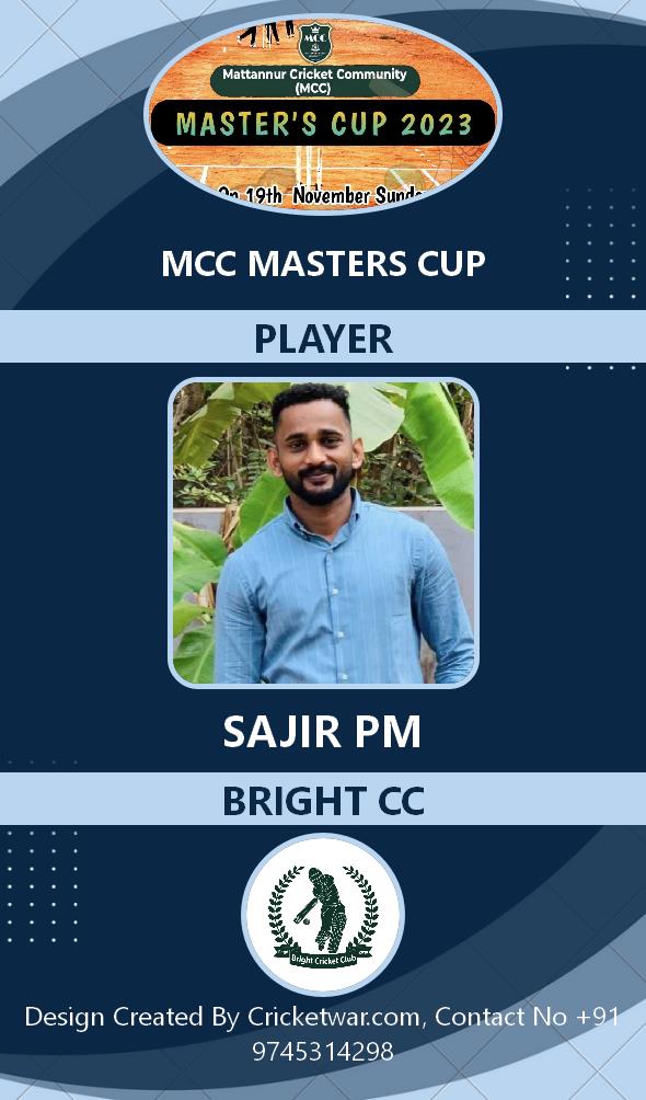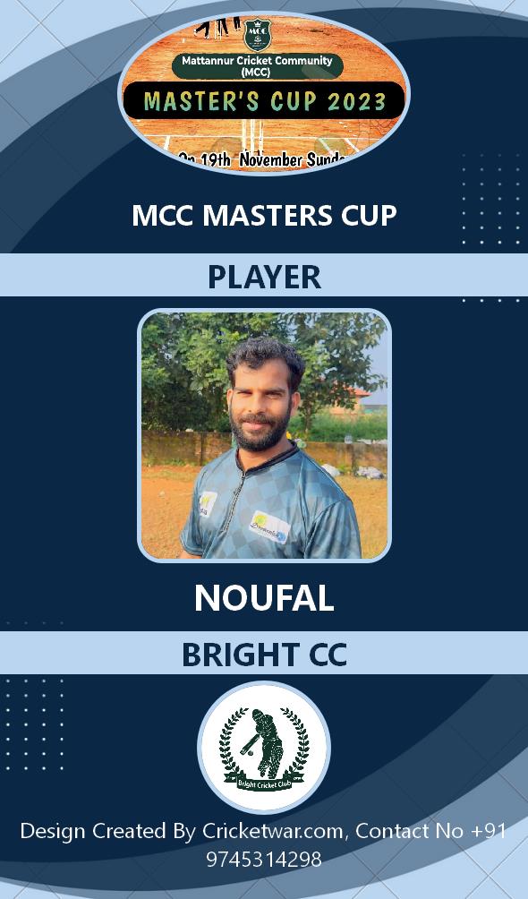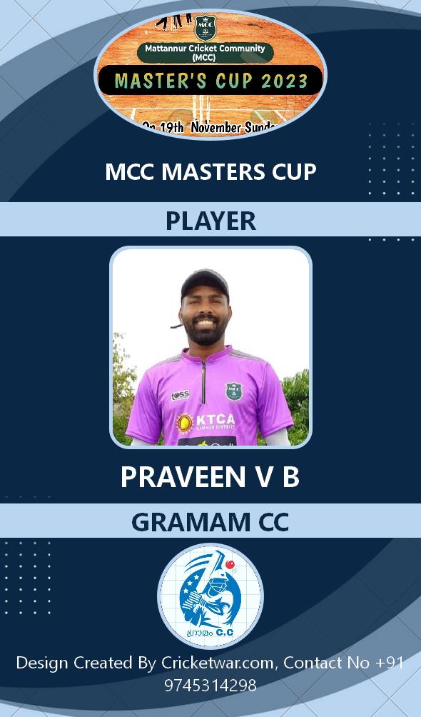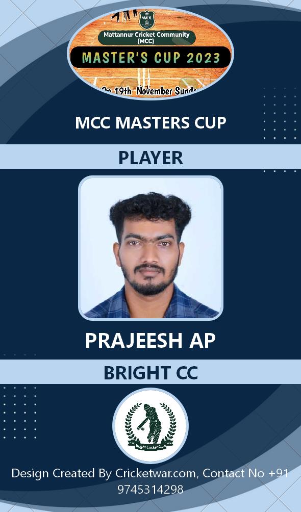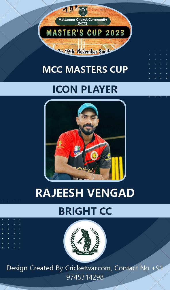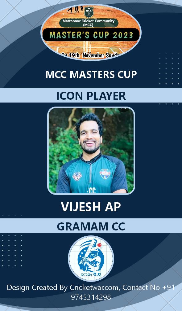 Allrounder, AGE : 33 Mattannur Bid Amount : 3000 Team : BRIGHT CC Download ID Card |