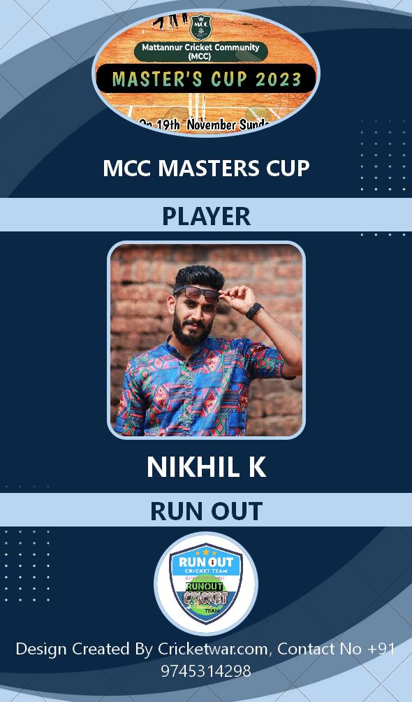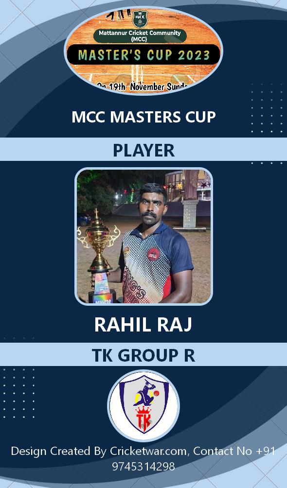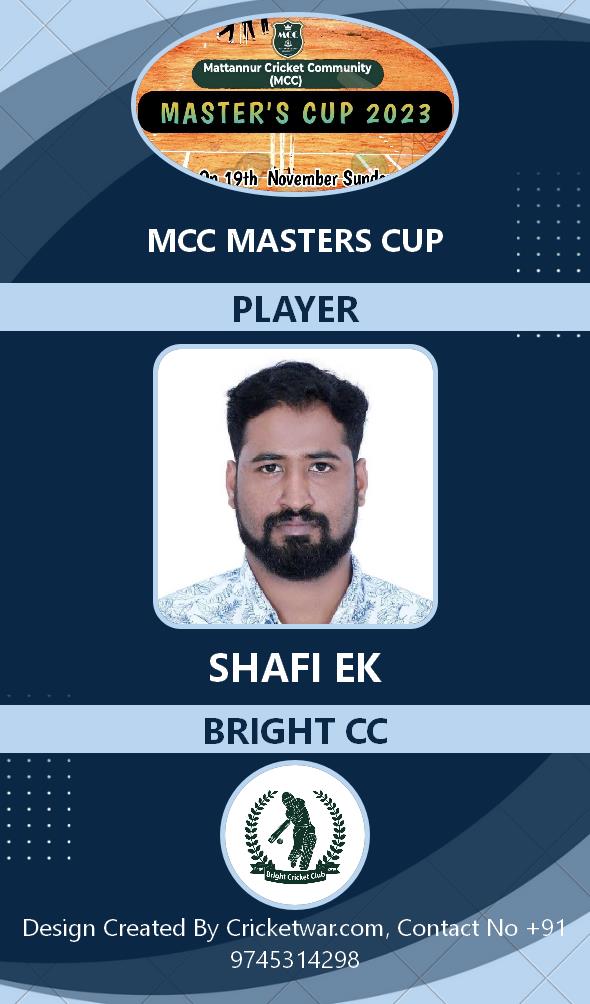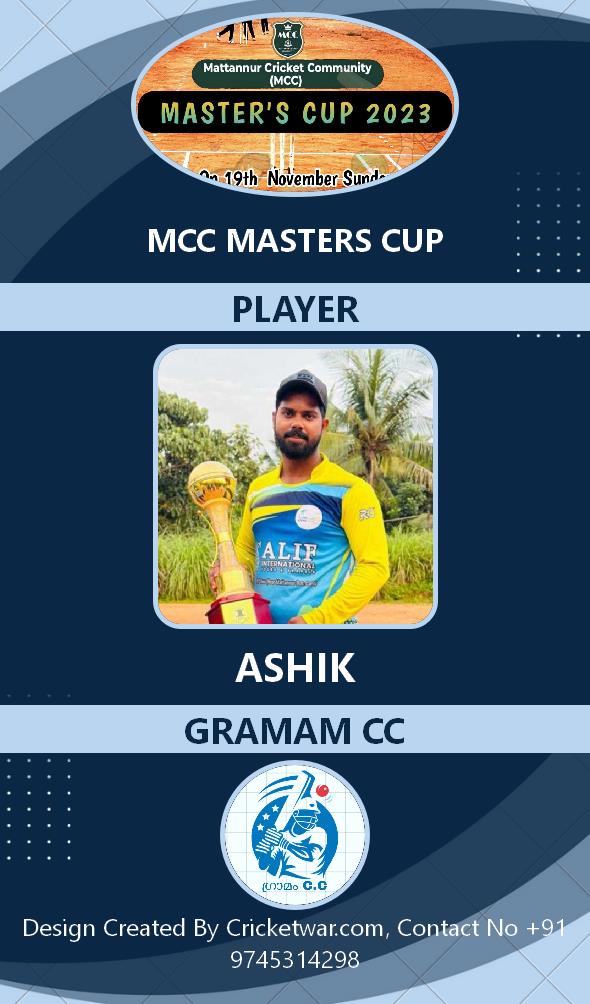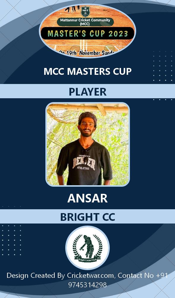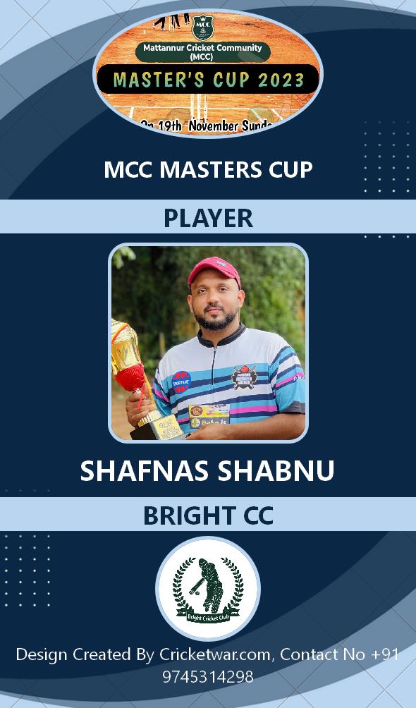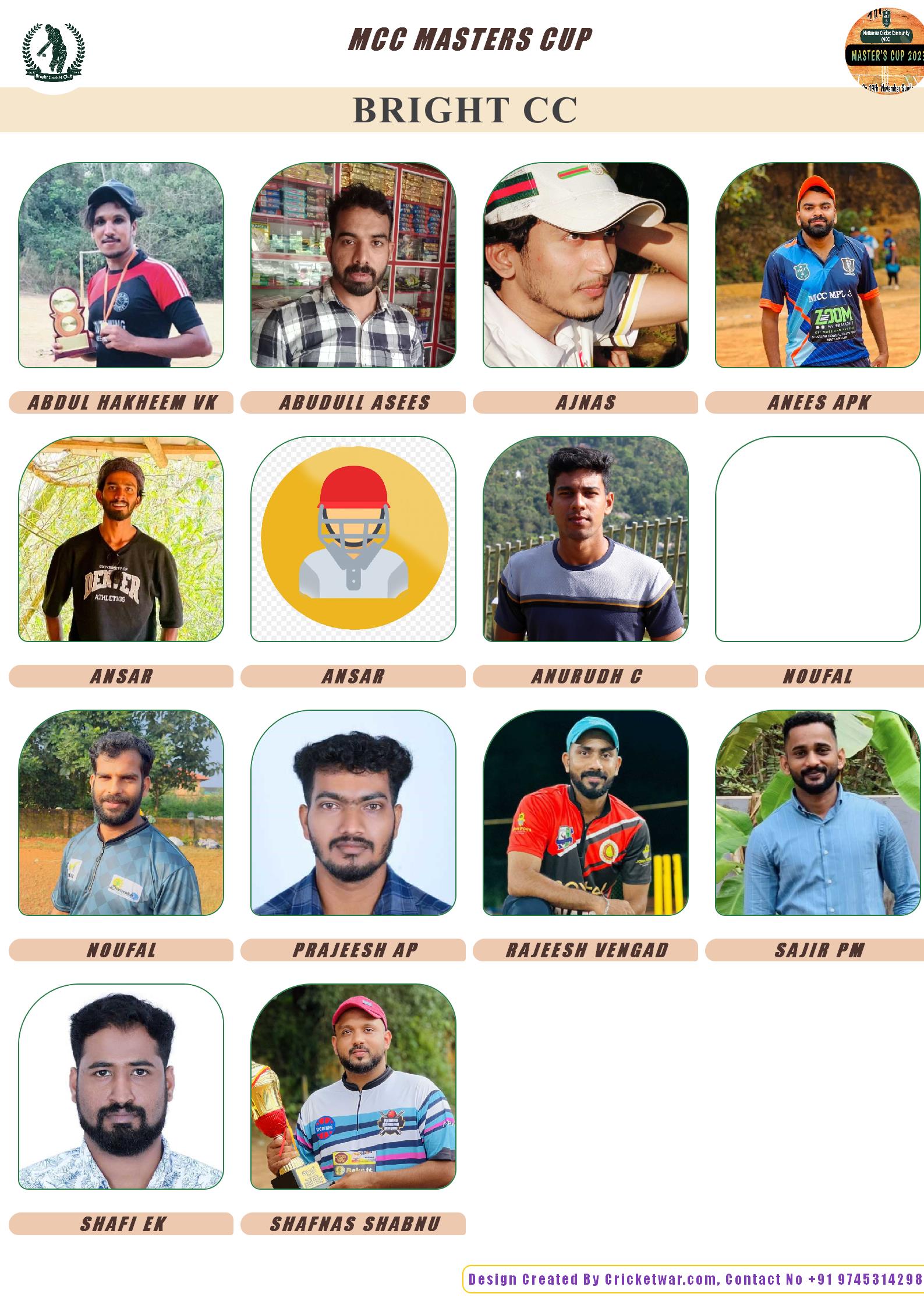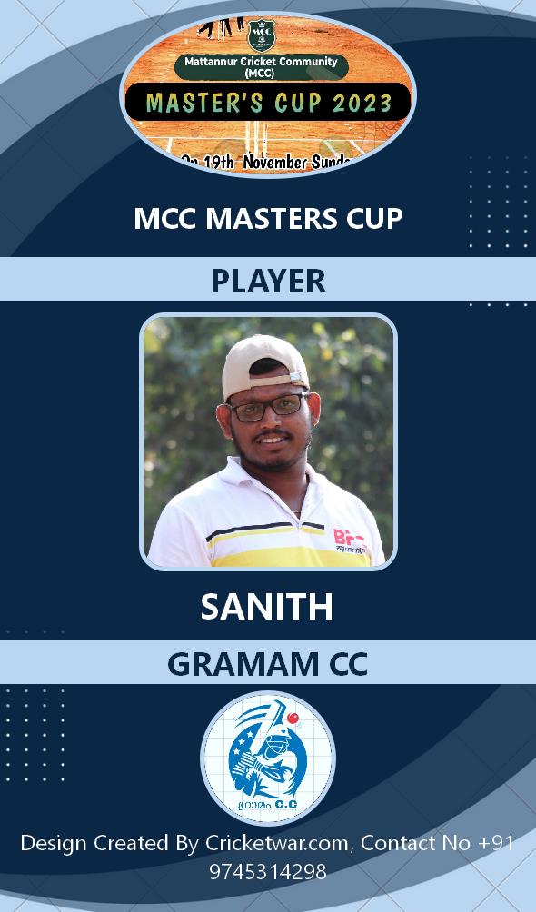Allrounder, AGE : 33 Mattannur Bid Amount : 3000 Team : BRIGHT CC Download ID Card |