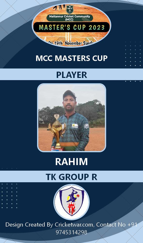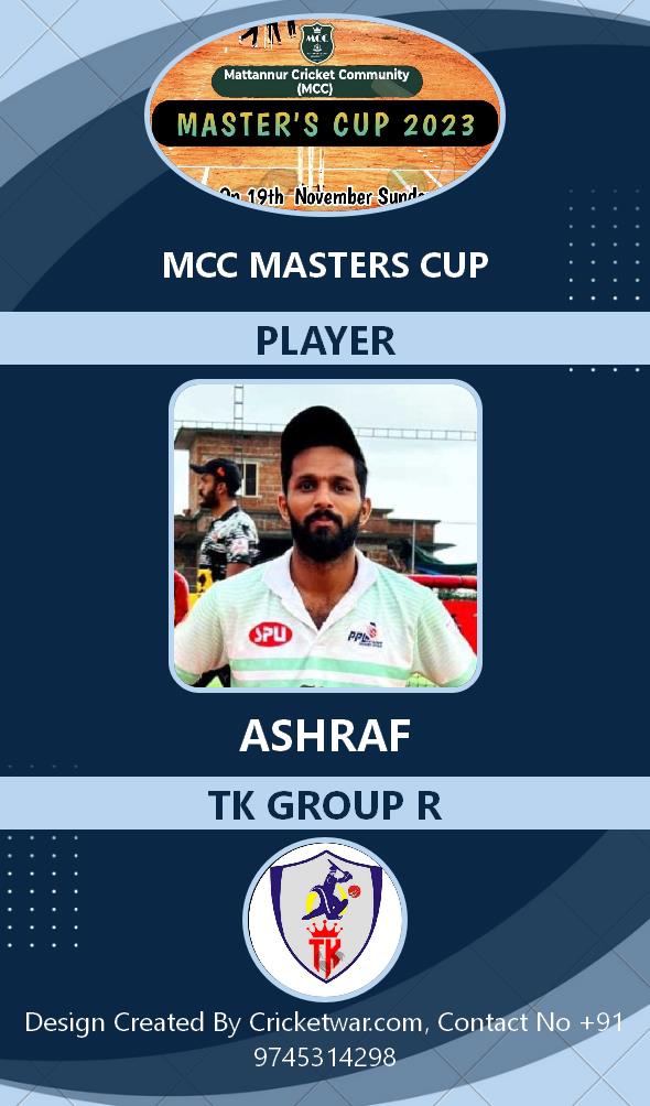 Batsman, AGE : 37 Mattanur Bid Amount : 1000 Team : TK GROUP R Download ID Card VIEW PROFILE |