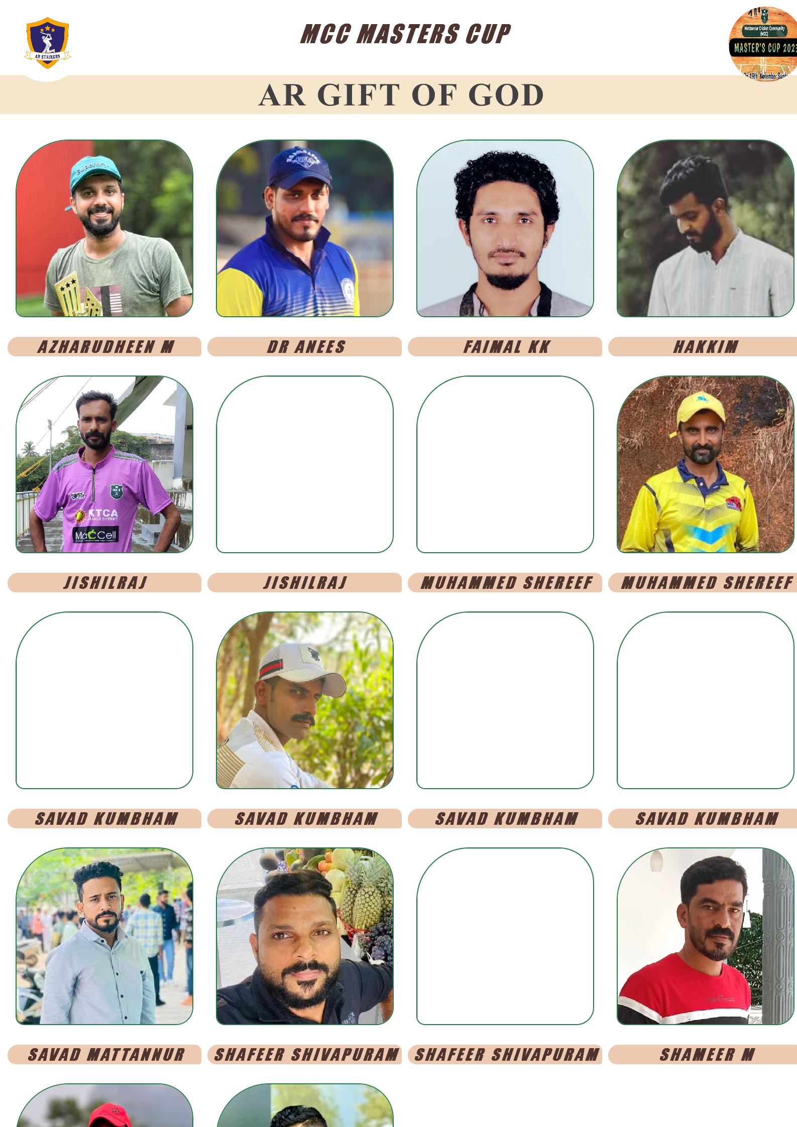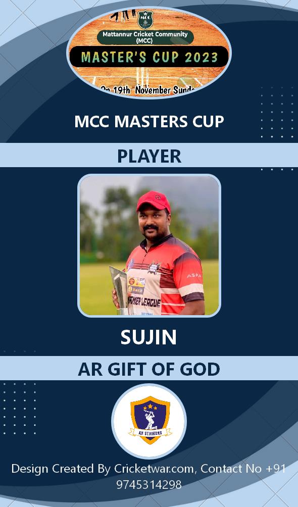 Allrounder, AGE : 34 KEEZHALLUR Bid Amount : 5000 Team : AR GIFT OF GOD Download ID Card VIEW PROFILE |