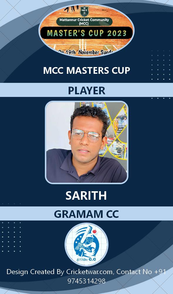 Batting Allrounder, AGE : 32 ULICKAL Bid Amount : 500 Team : BRIGHT CC Download ID Card VIEW PROFILE |