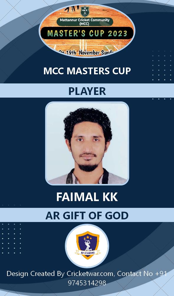 Allrounder, AGE : 37 Mattannur Bid Amount : 5000 Team : AR GIFT OF GOD Download ID Card VIEW PROFILE |