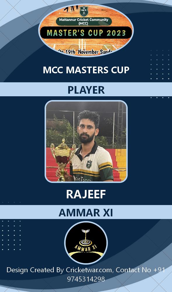 Allrounder, AGE : 2 Iritty Bid Amount : 3000 Team : AMMAR XI Download ID Card |