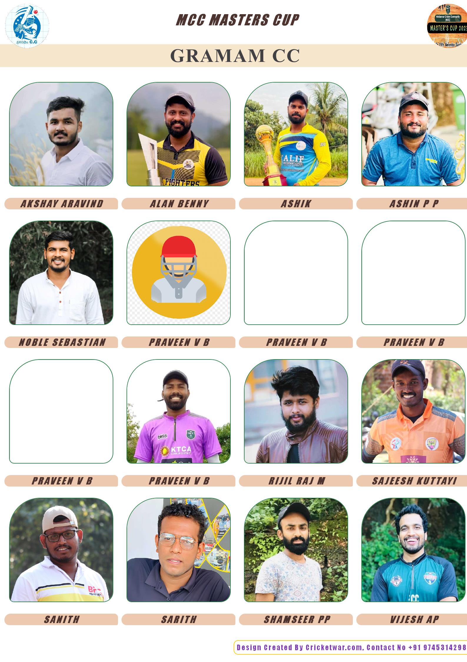 Allrounder, AGE : 36 MUZHAKKUNNU Bid Amount : 10000 Team : GRAMAM CC Download ID Card VIEW PROFILE |