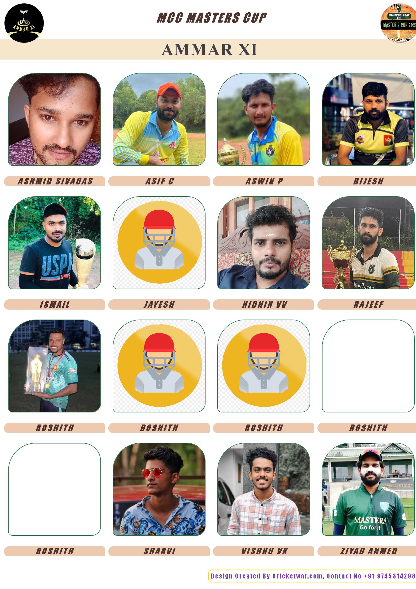 Allrounder, AGE : 36 Manantheri Bid Amount : 10000 Team : AMMAR XI Download ID Card VIEW PROFILE |