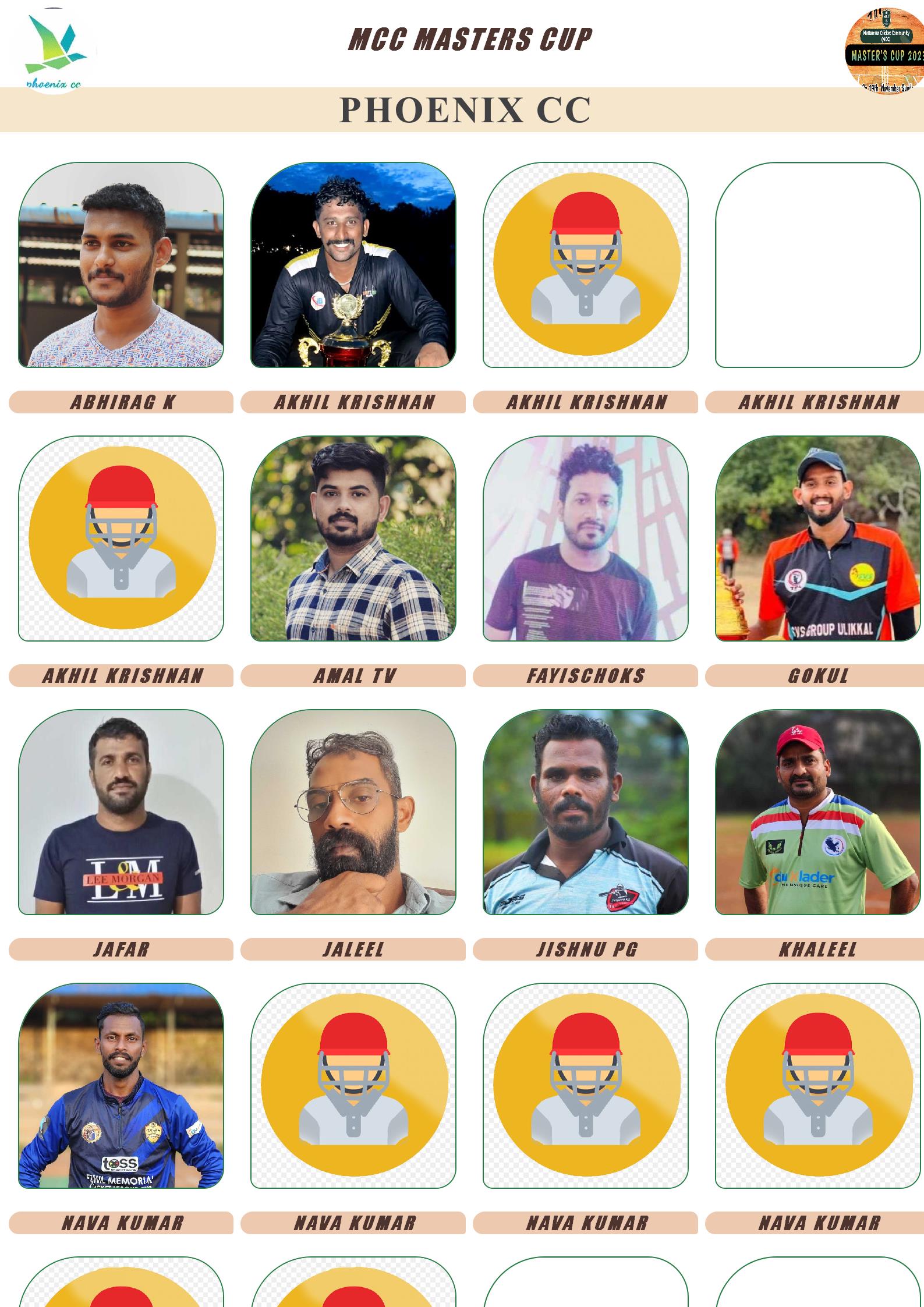 Allrounder, AGE : 34 Kolayad Bid Amount : 10000 Team : PHOENIX CC Download ID Card VIEW PROFILE |