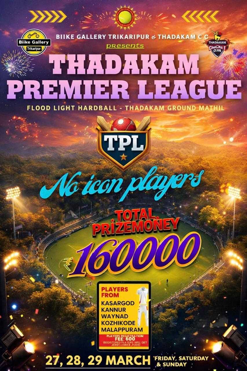 THADAKAM PREMIER LEAGUE SEASON 2 Start Date : 22-Feb-2025 , End Date : 22-Feb-2025. Thadakam ground mathil, Kannur |