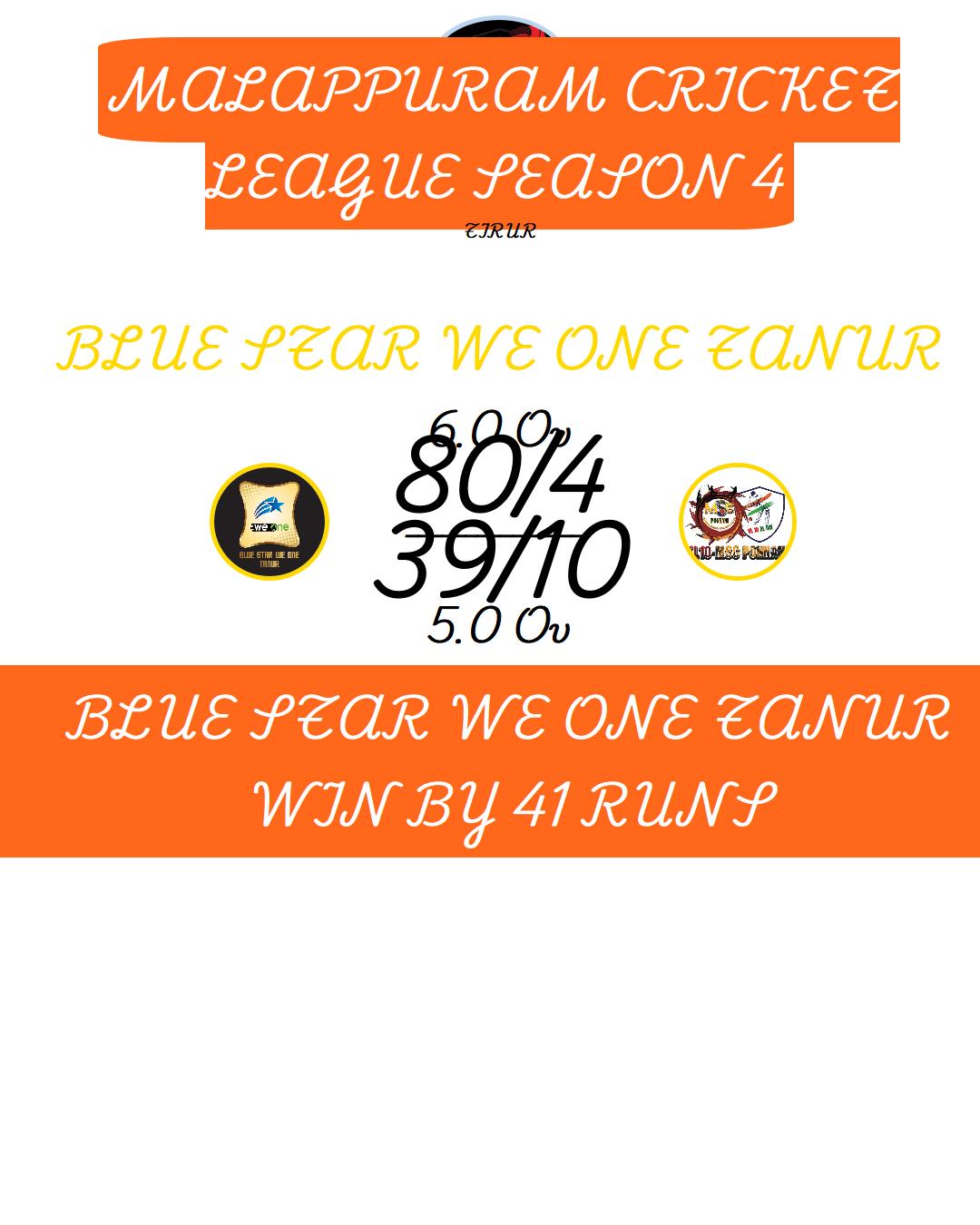 BLUE STAR WE ONE TANUR WIN BY 41 RUNS