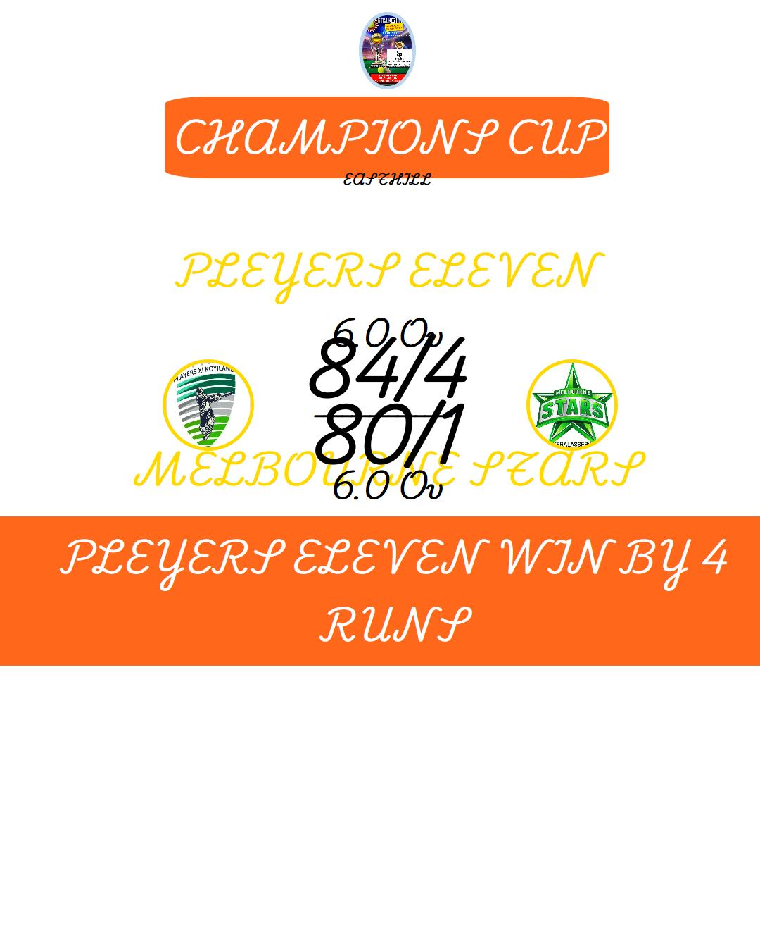 PLEYERS ELEVEN WIN BY 4 RUNS