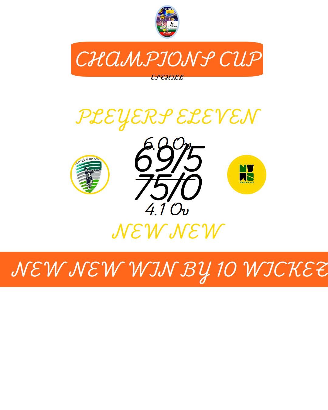 NEW NEW WIN BY 10 WICKET