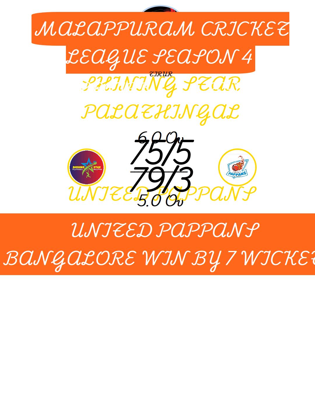 SHINING STAR PALATHINGAL (MALAPPURAM CRICKET LEAGUE SEASON 4) MATCHES