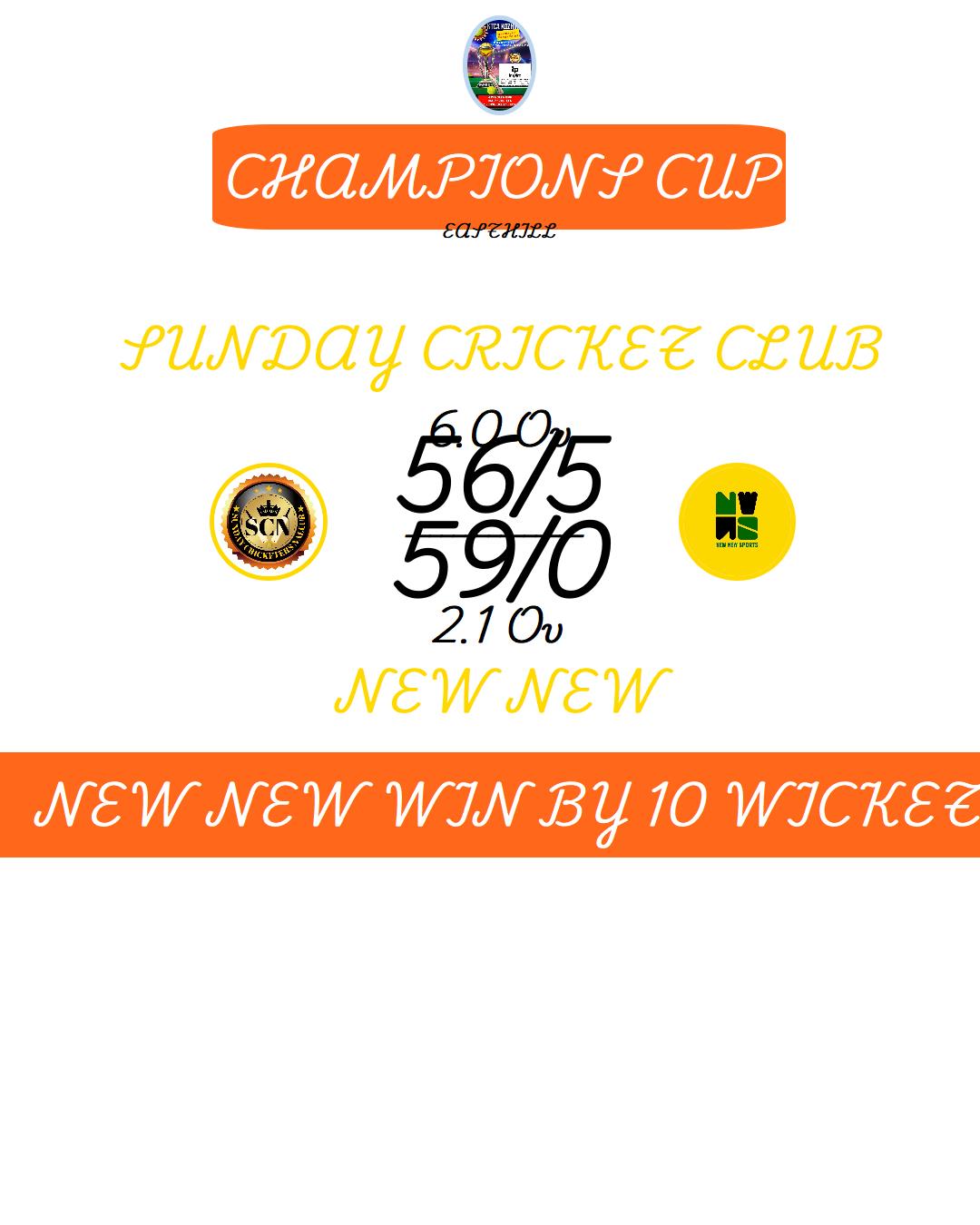 NEW NEW WIN BY 8 WICKET