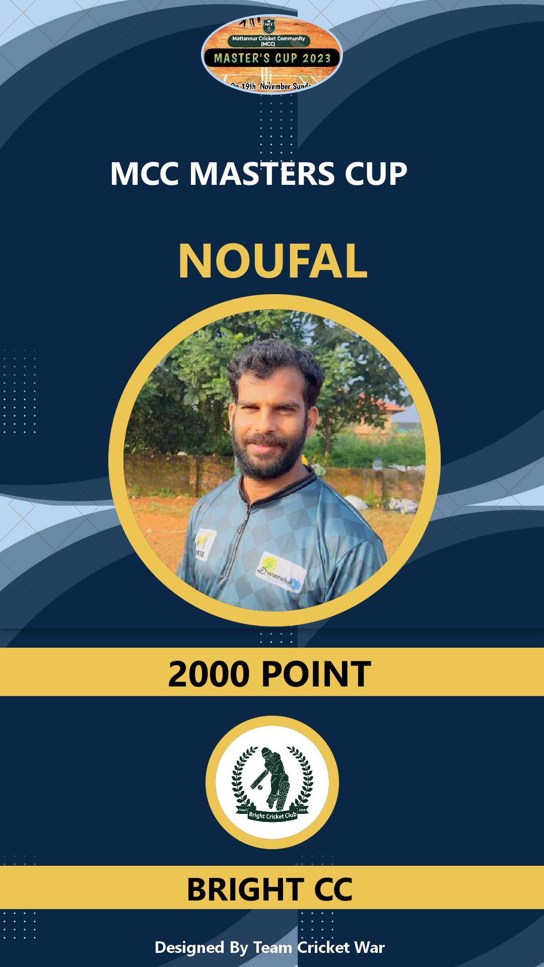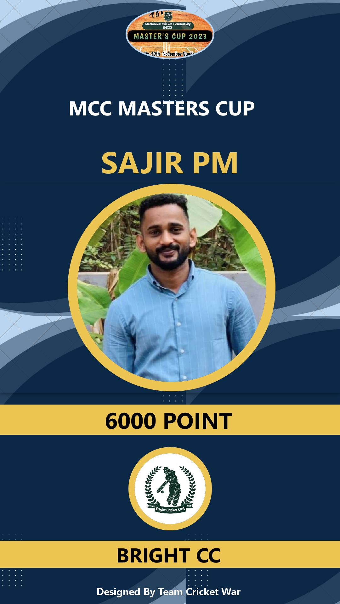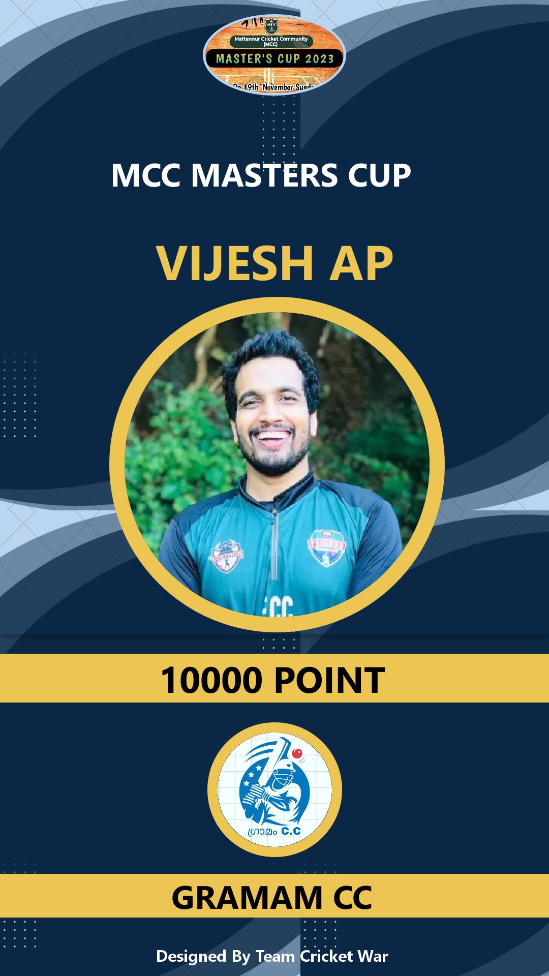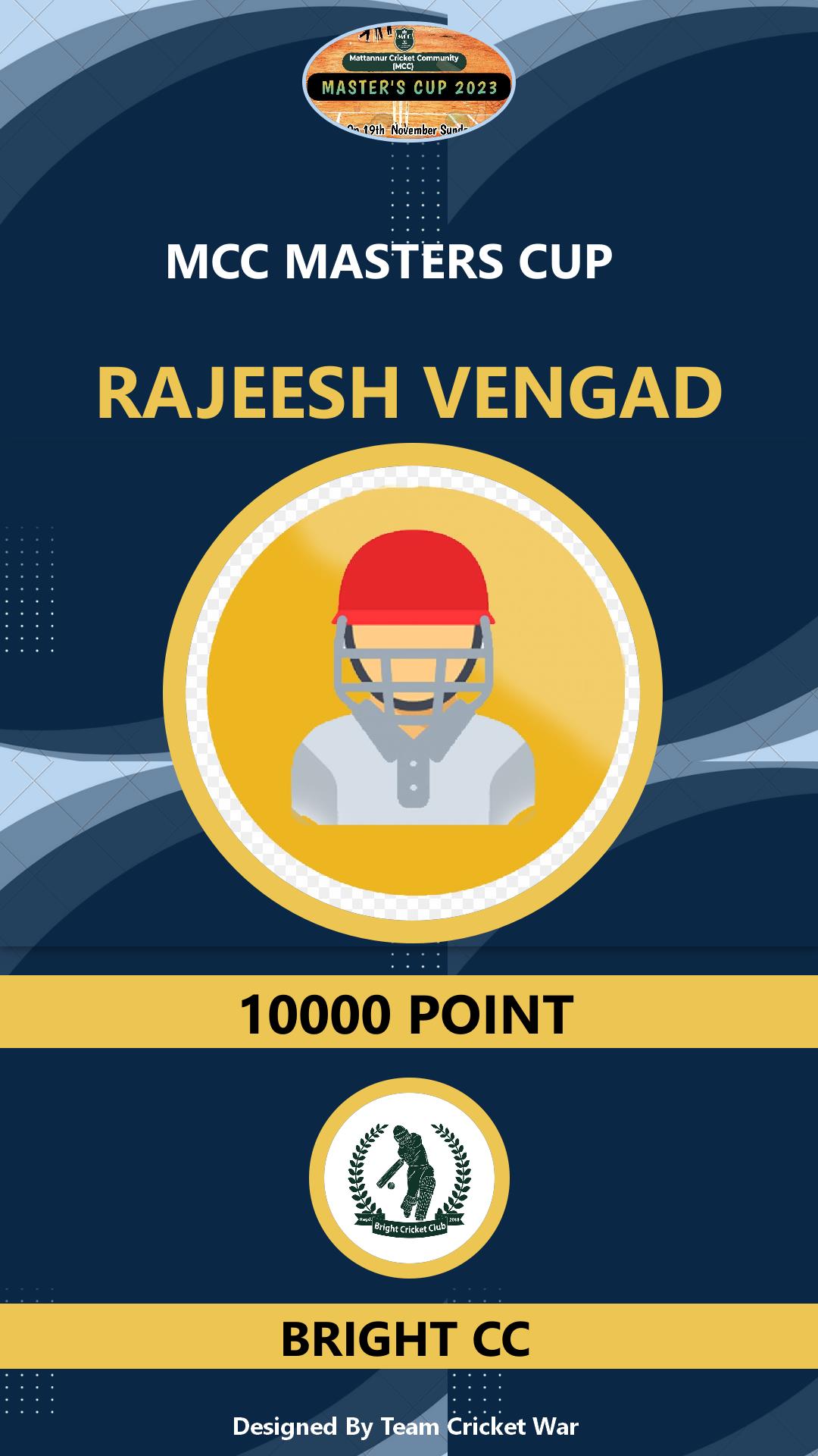 Allrounder, AGE : 33 Mattannur Bid Amount : 3000 Team : BRIGHT CC Download ID Card |