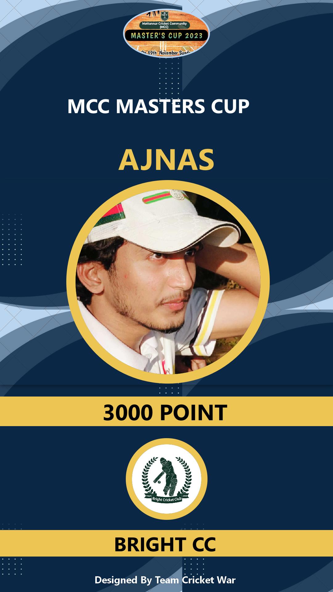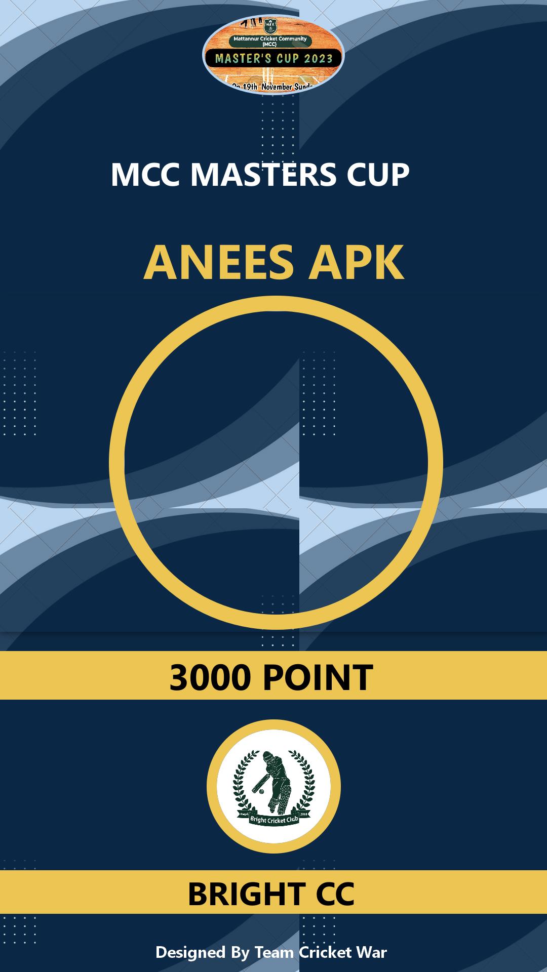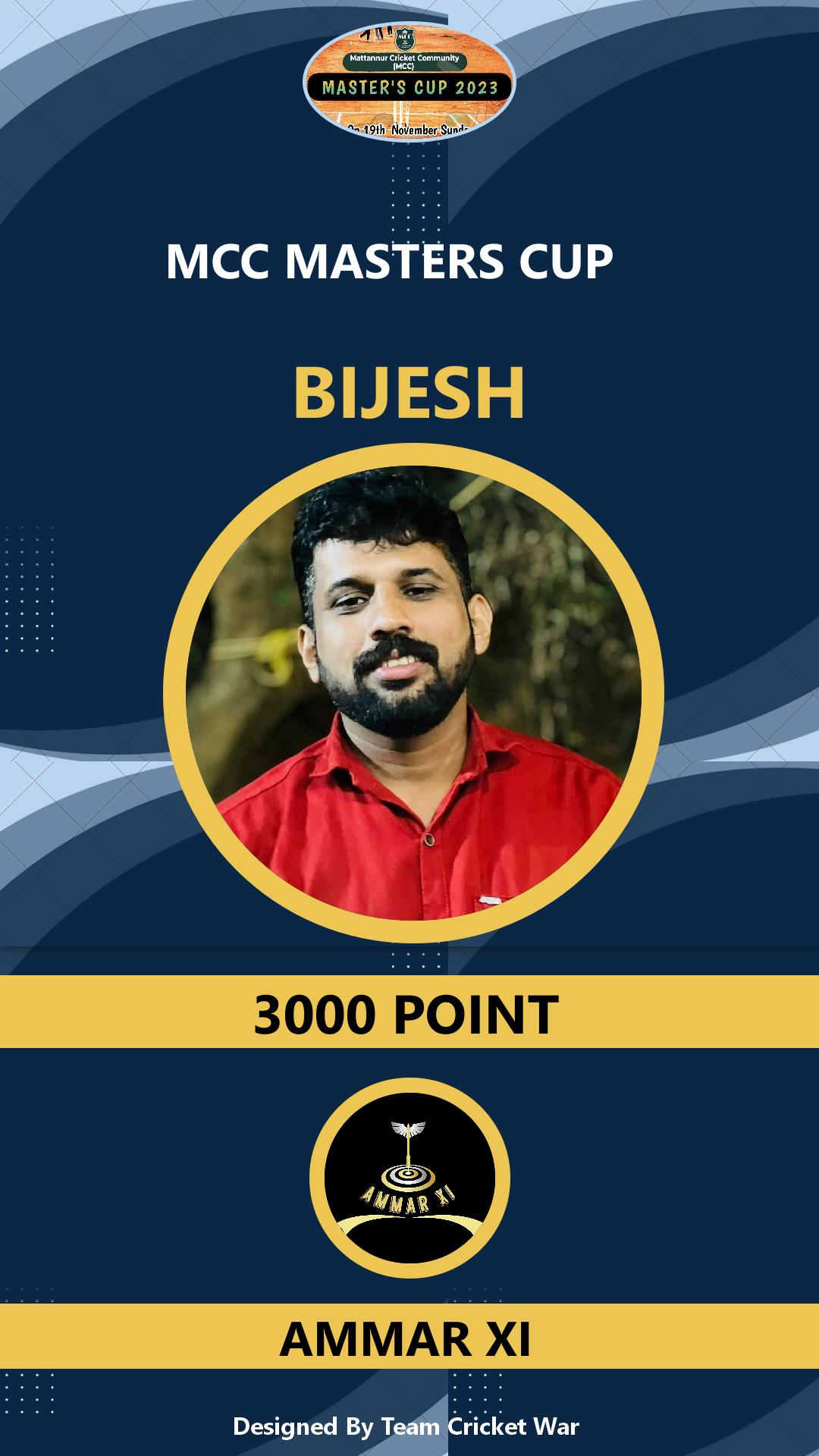 Allrounder, AGE : 33 Mattannur Bid Amount : 3000 Team : BRIGHT CC Download ID Card |