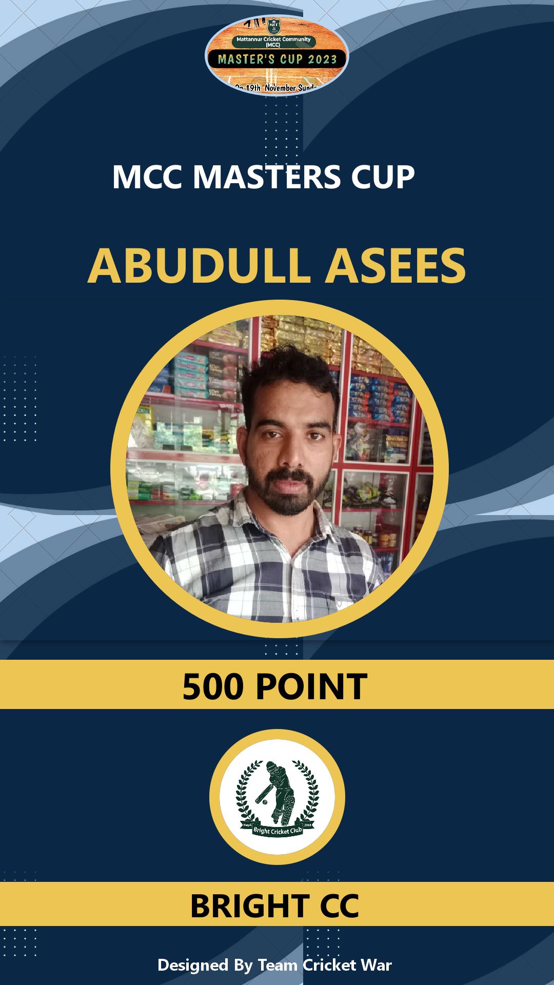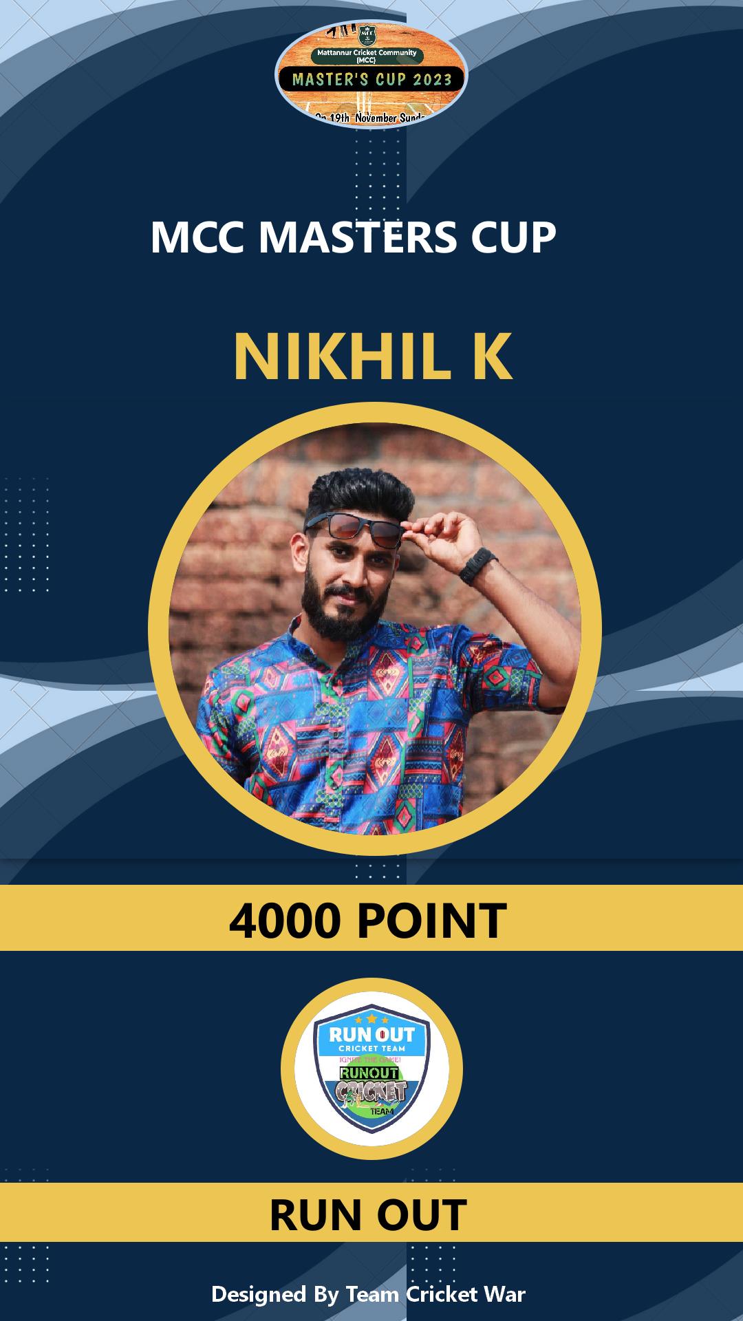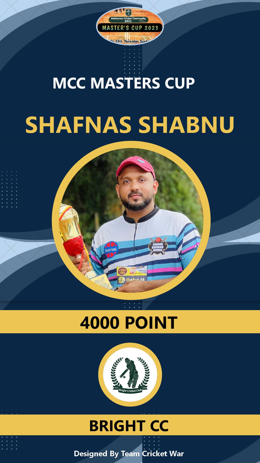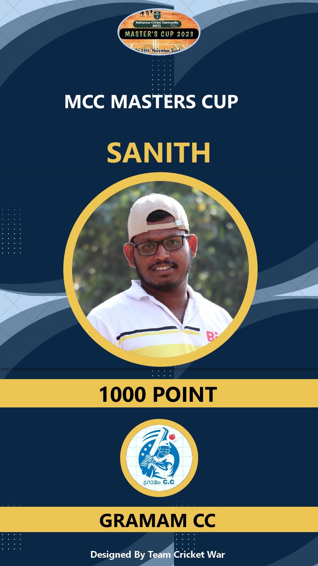 Allrounder, AGE : 33 Mattannur Bid Amount : 3000 Team : BRIGHT CC Download ID Card |