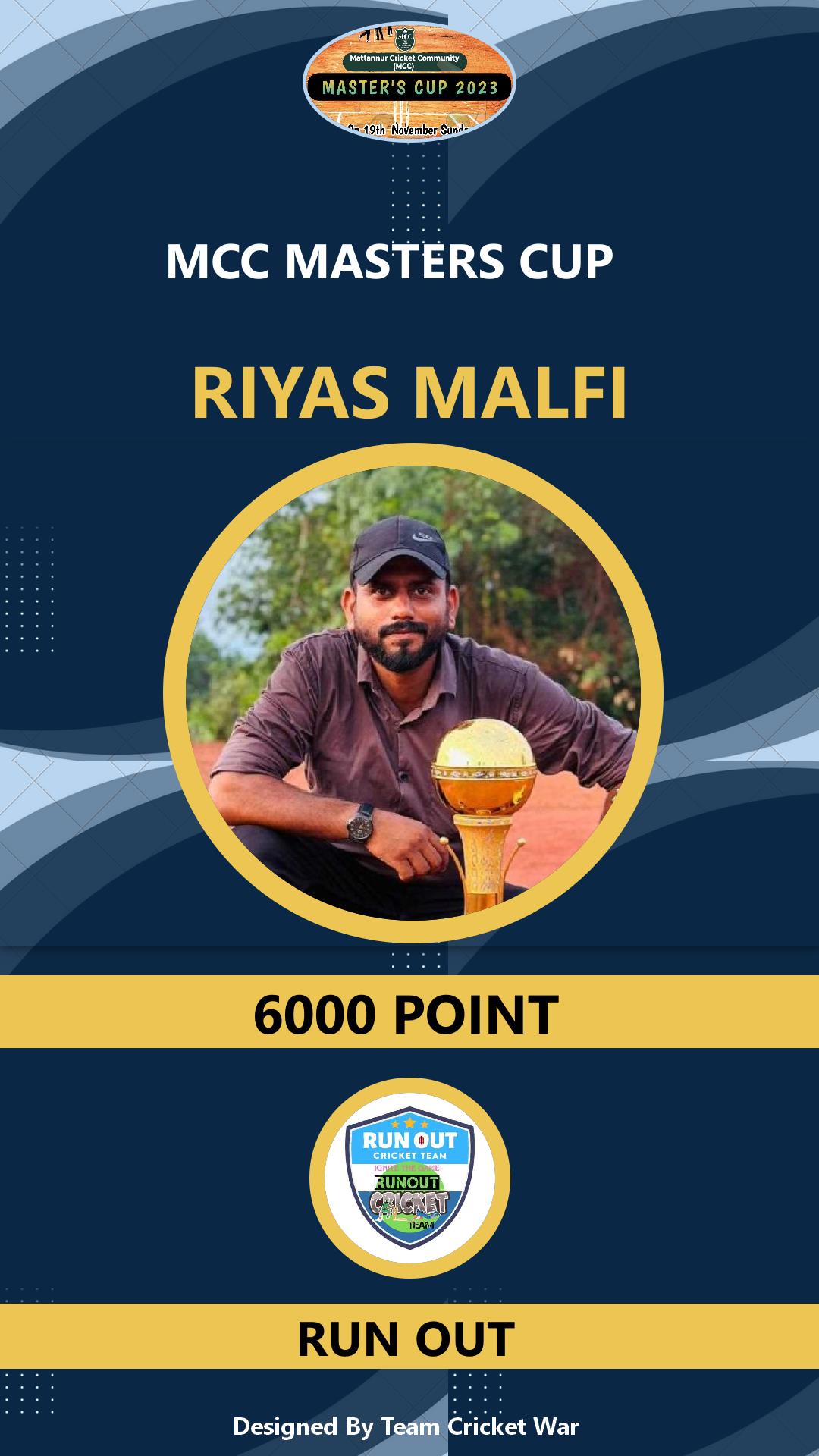 Allrounder, AGE : 29 Maloor Bid Amount : 5000 Team : RUN OUT Download ID Card VIEW PROFILE |