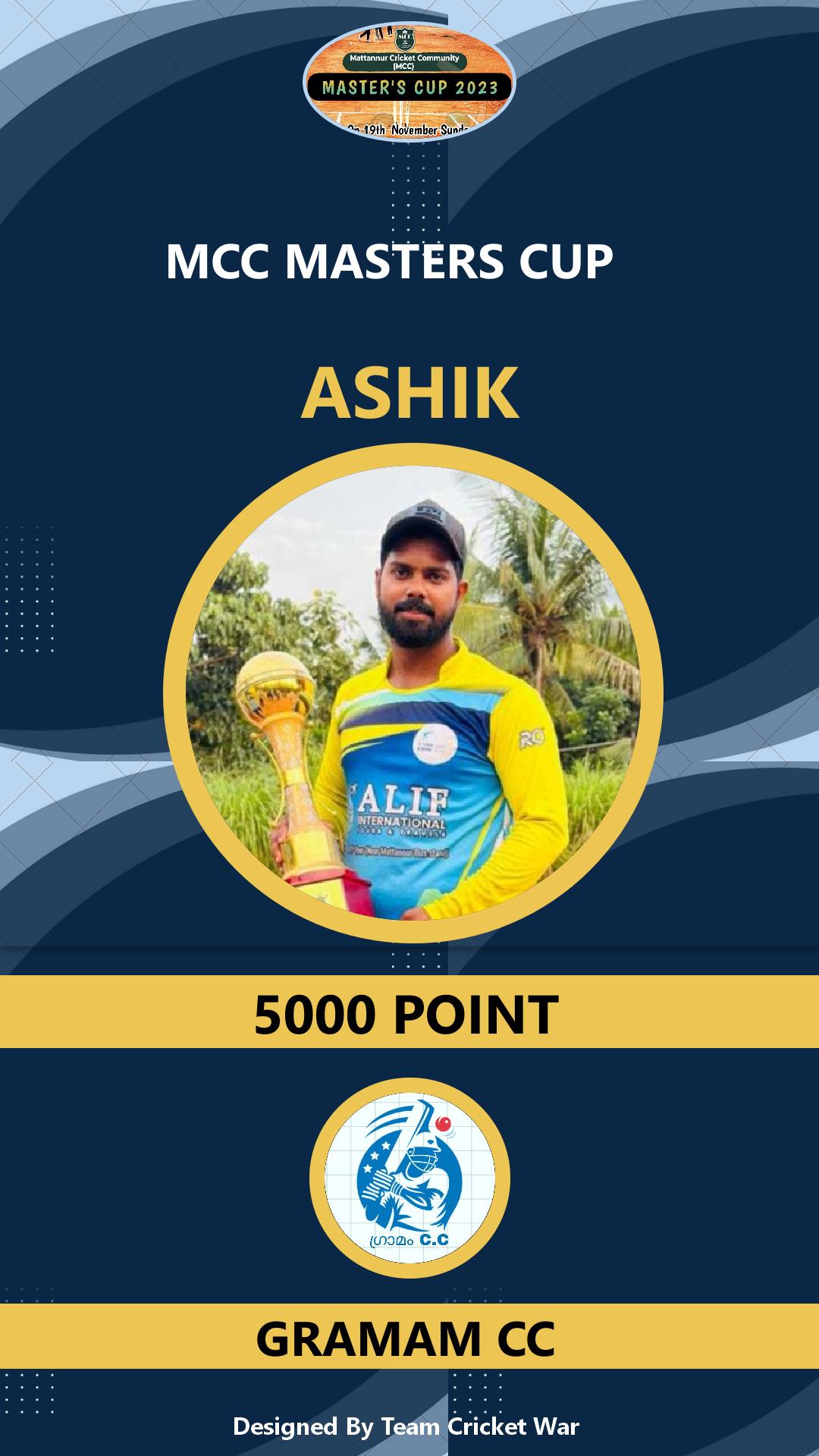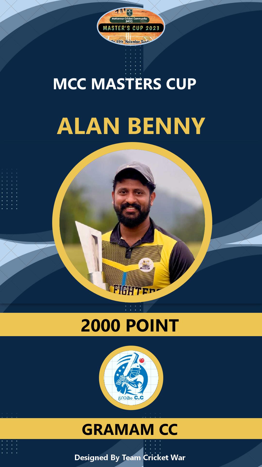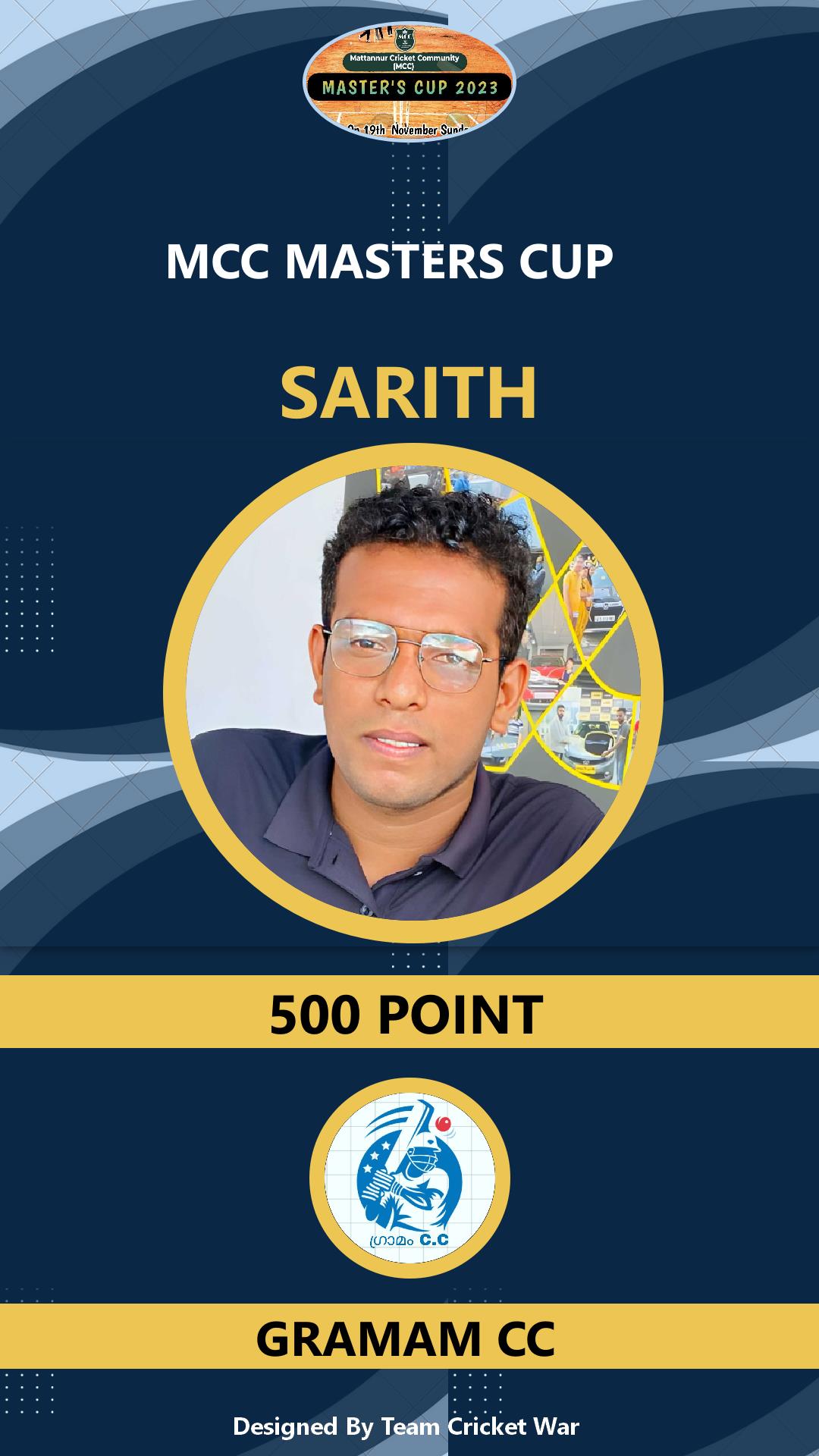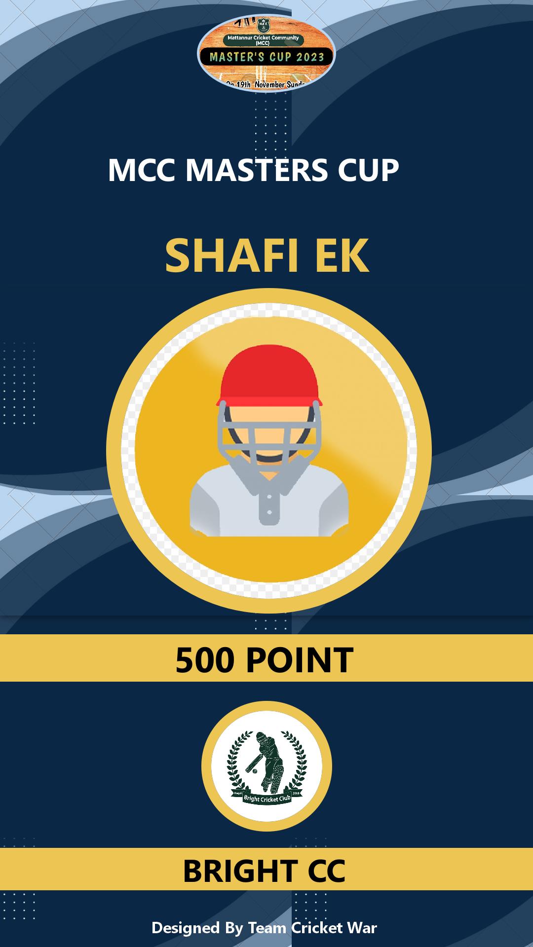 Batting Allrounder, AGE : 32 ULICKAL Bid Amount : 500 Team : BRIGHT CC Download ID Card VIEW PROFILE |