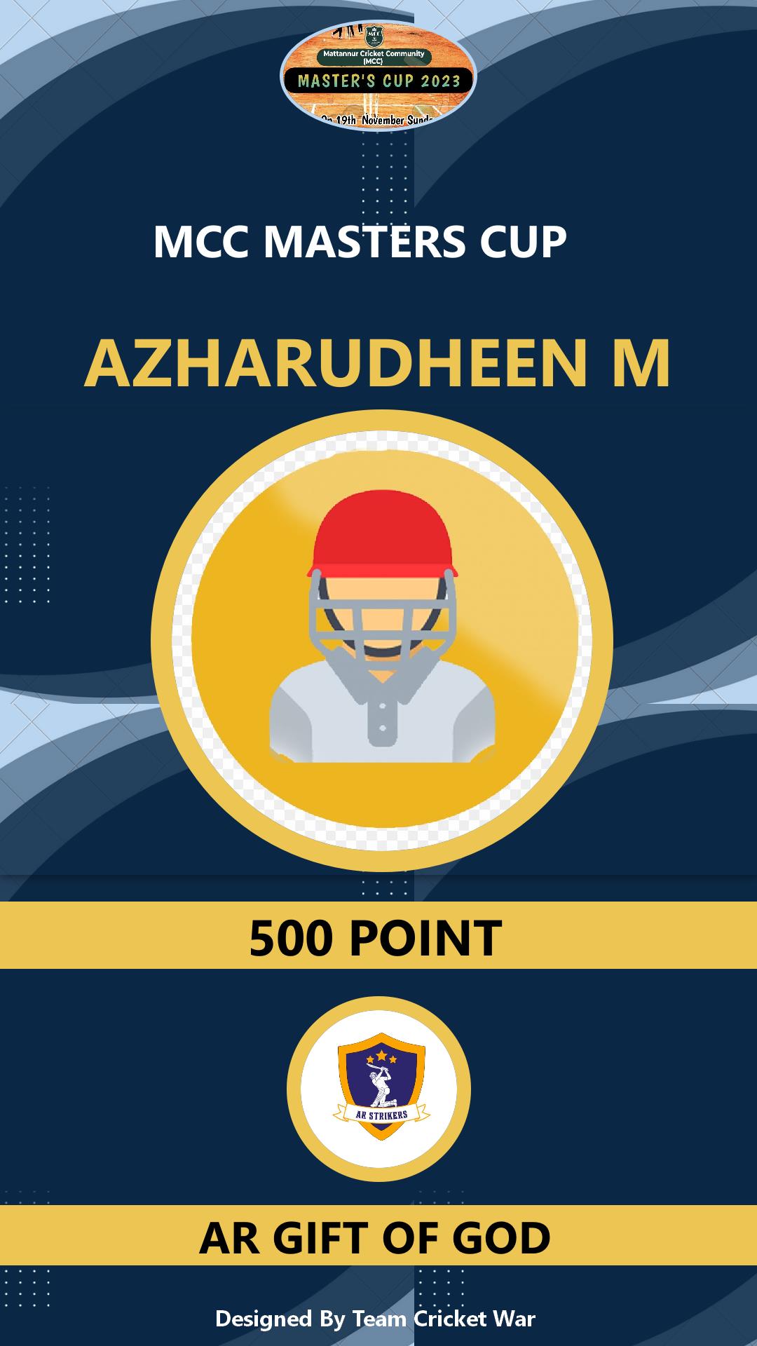 Allrounder, AGE : 34 Aralam Bid Amount : 3000 Team : AR GIFT OF GOD Download ID Card VIEW PROFILE |