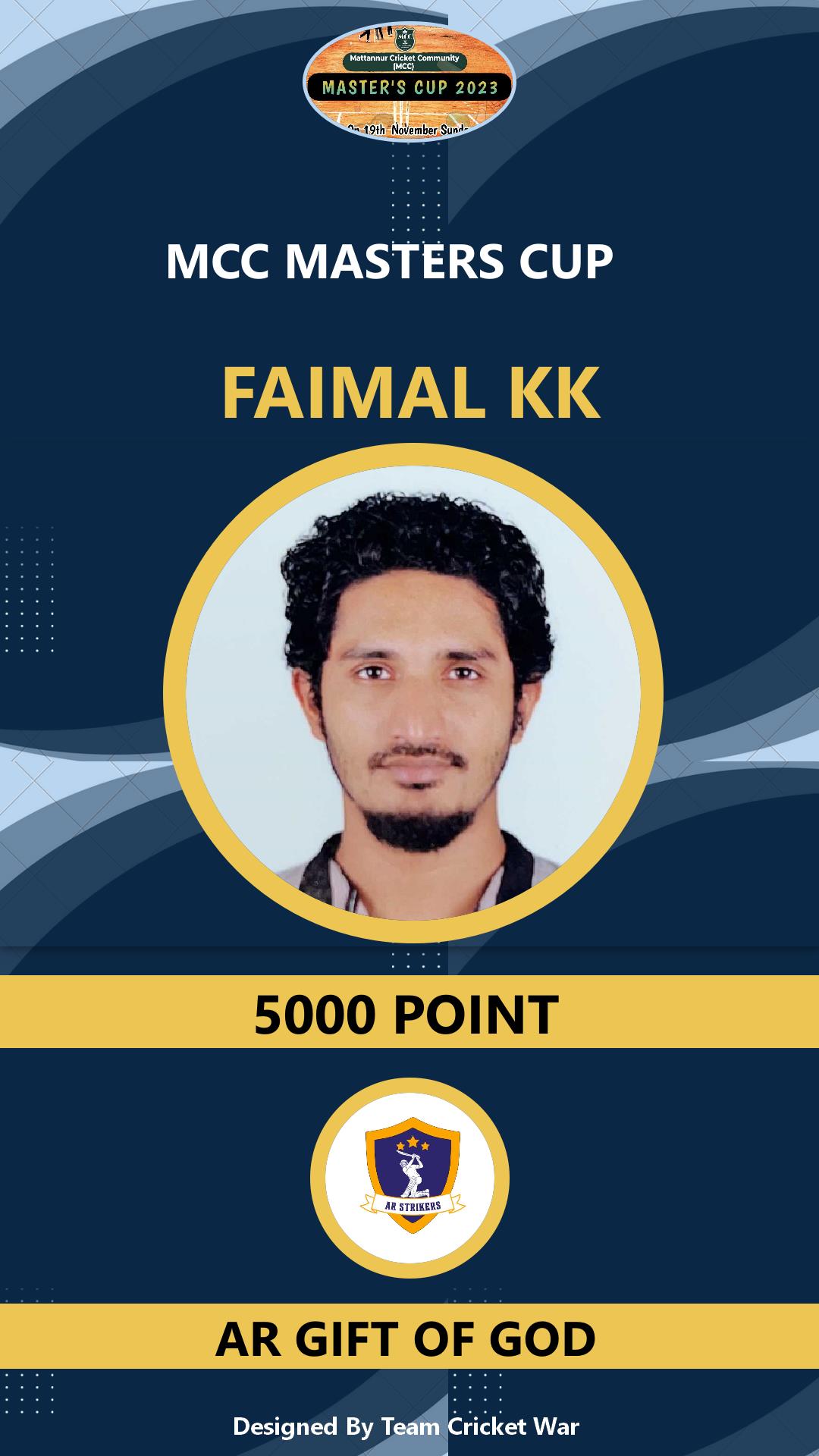 Allrounder, AGE : 37 Mattannur Bid Amount : 5000 Team : AR GIFT OF GOD Download ID Card VIEW PROFILE |