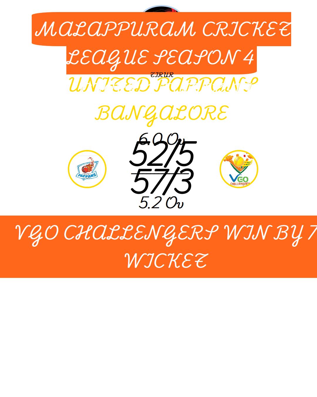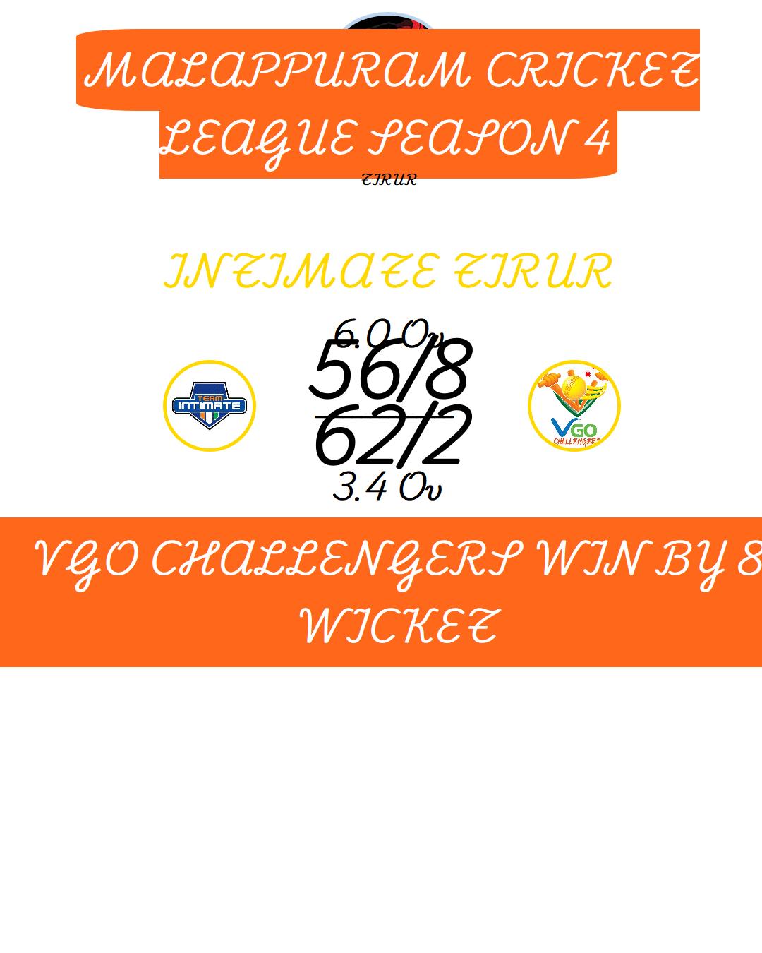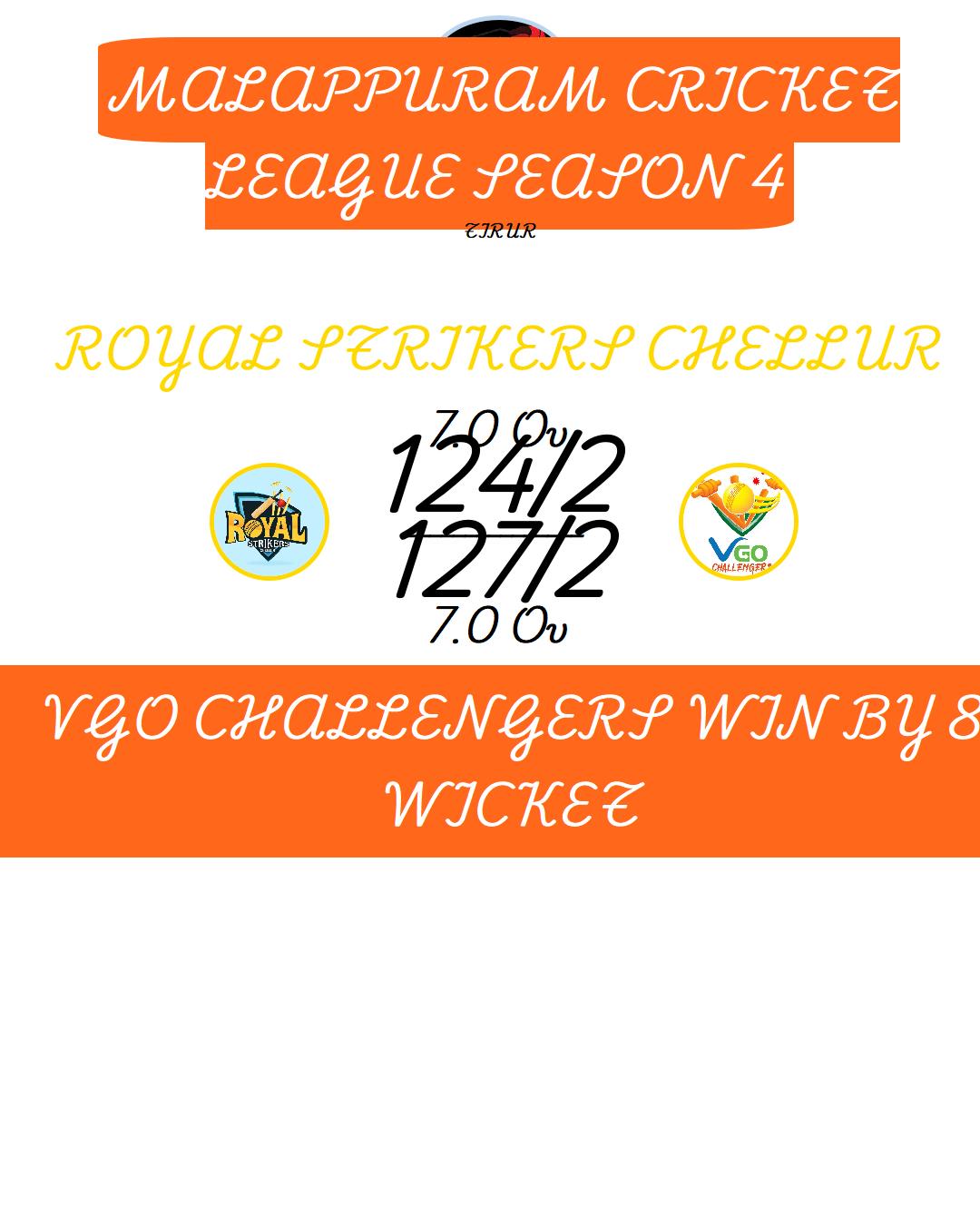 VGO CHALLENGERS WIN BY 8 WICKET