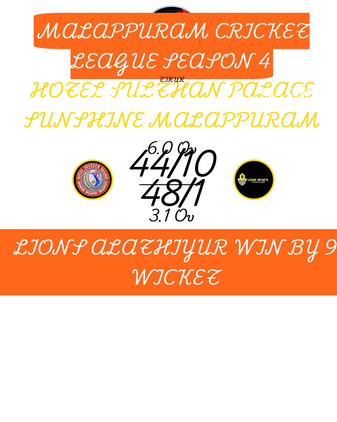 MALAPPURAM CRICKET LEAGUE SEASON 4 MATCHES