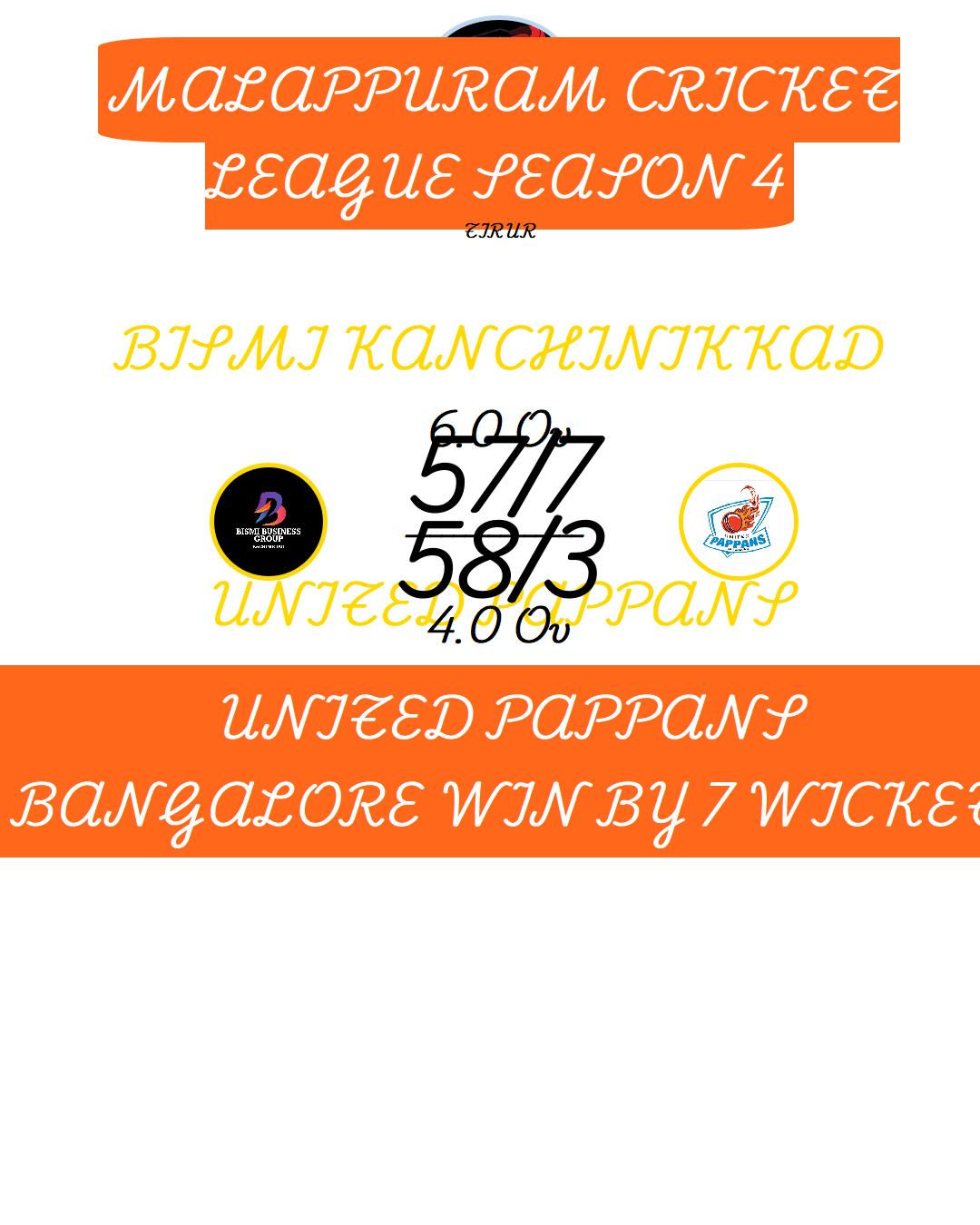 UNITED PAPPANS BANGALORE WIN BY 7 WICKET