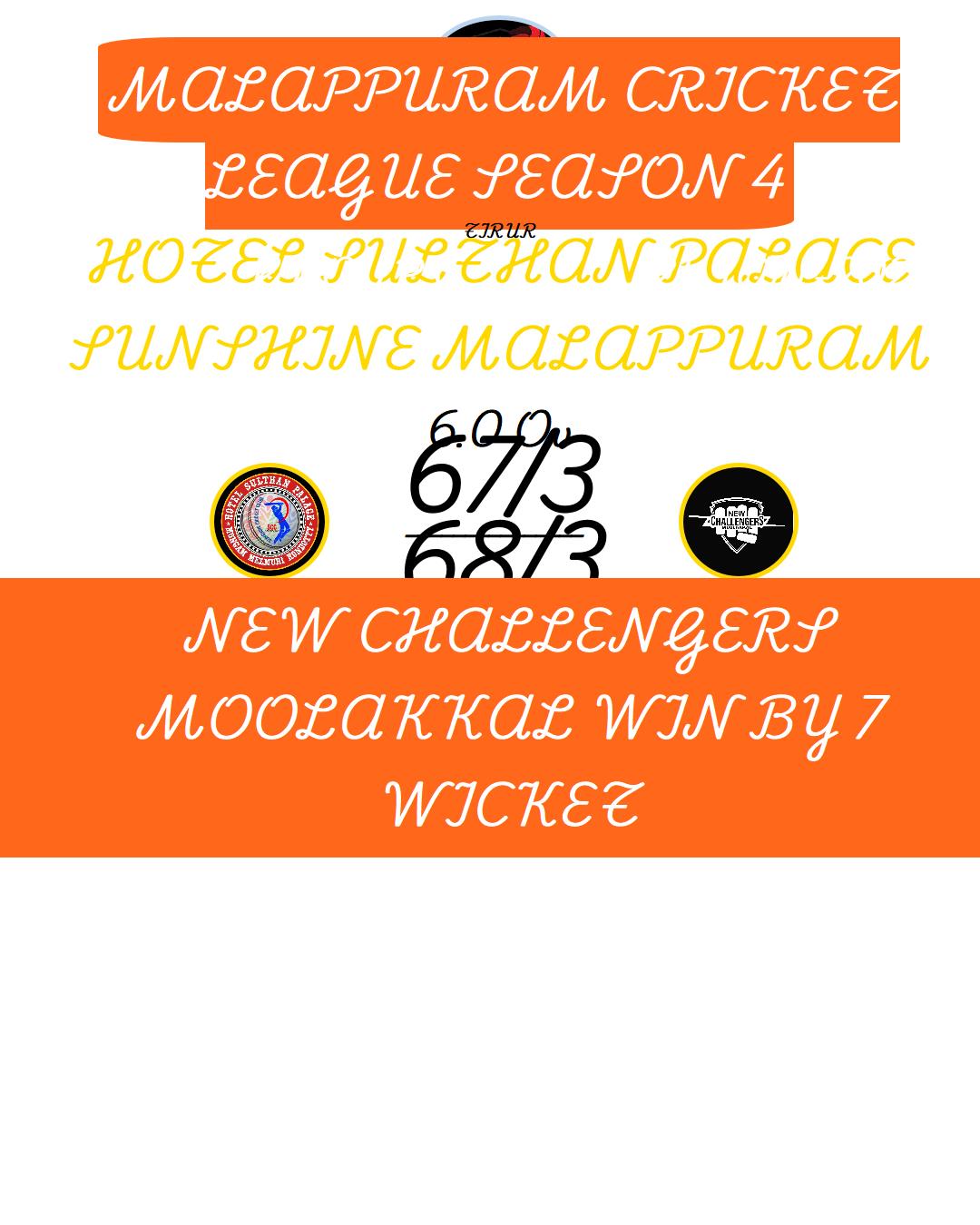 NEW CHALLENGERS MOOLAKKAL WIN BY 7 WICKET