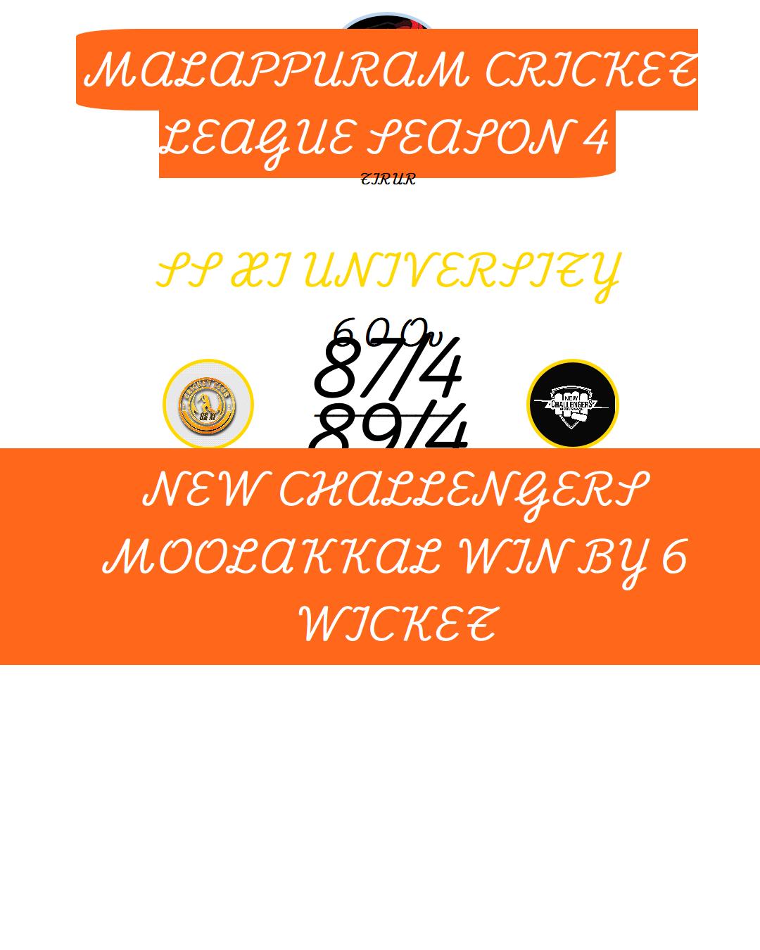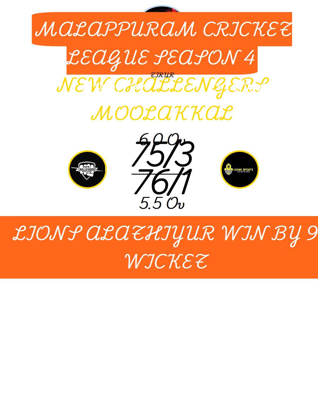 NEW CHALLENGERS MOOLAKKAL WIN BY 6 WICKET