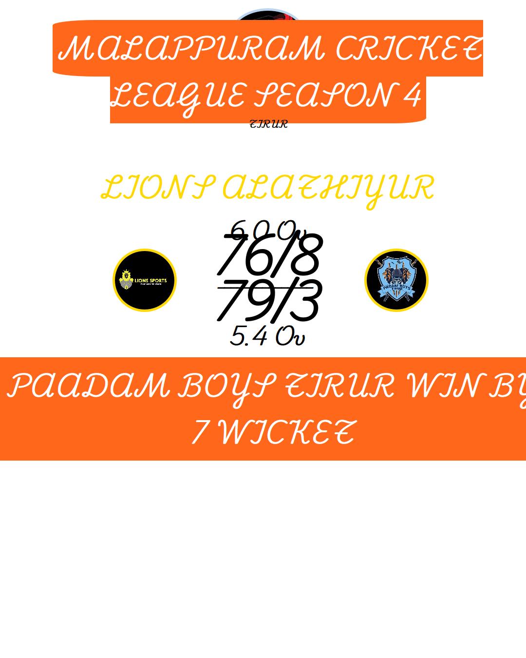 PAADAM BOYS TIRUR WIN BY 7 WICKET