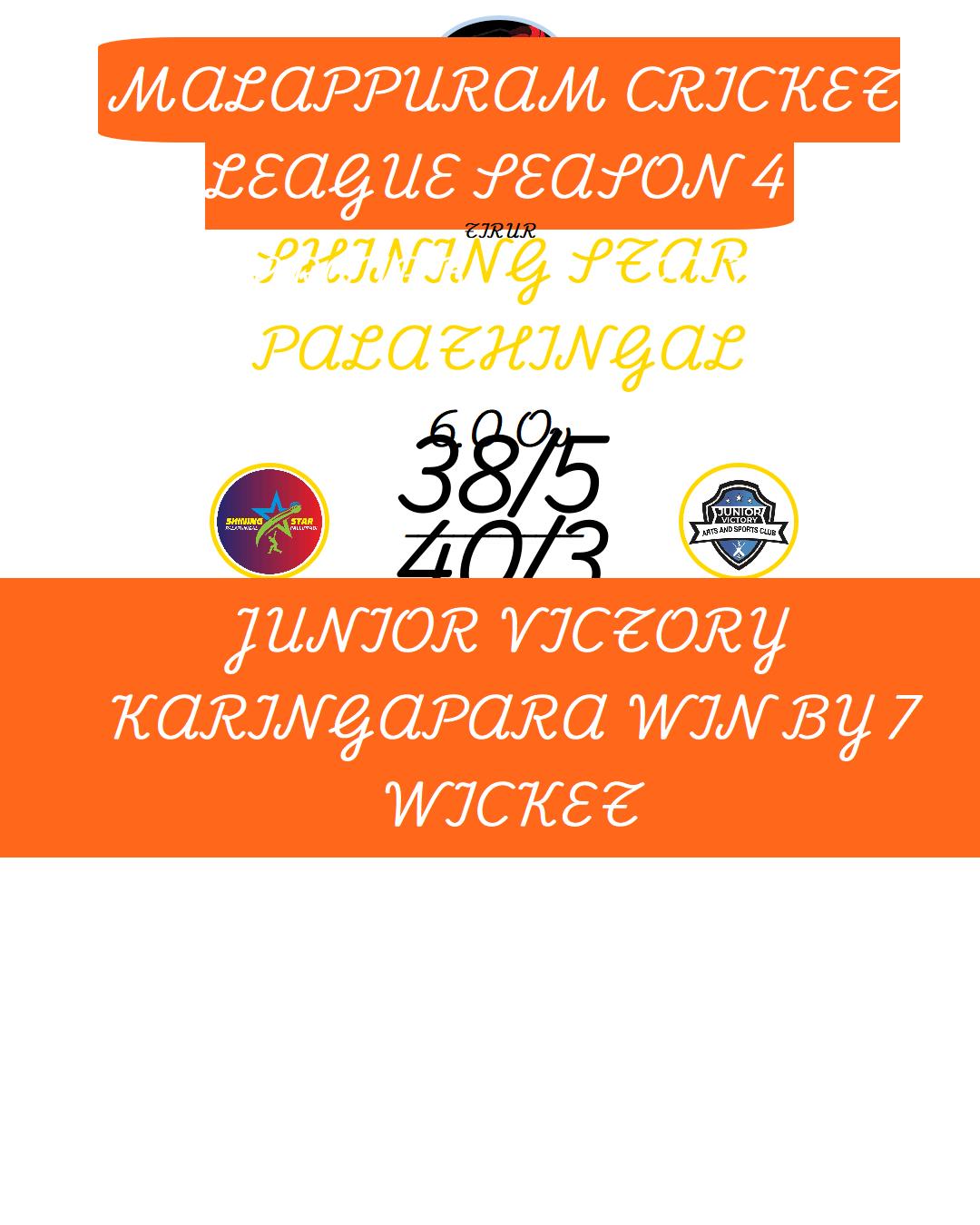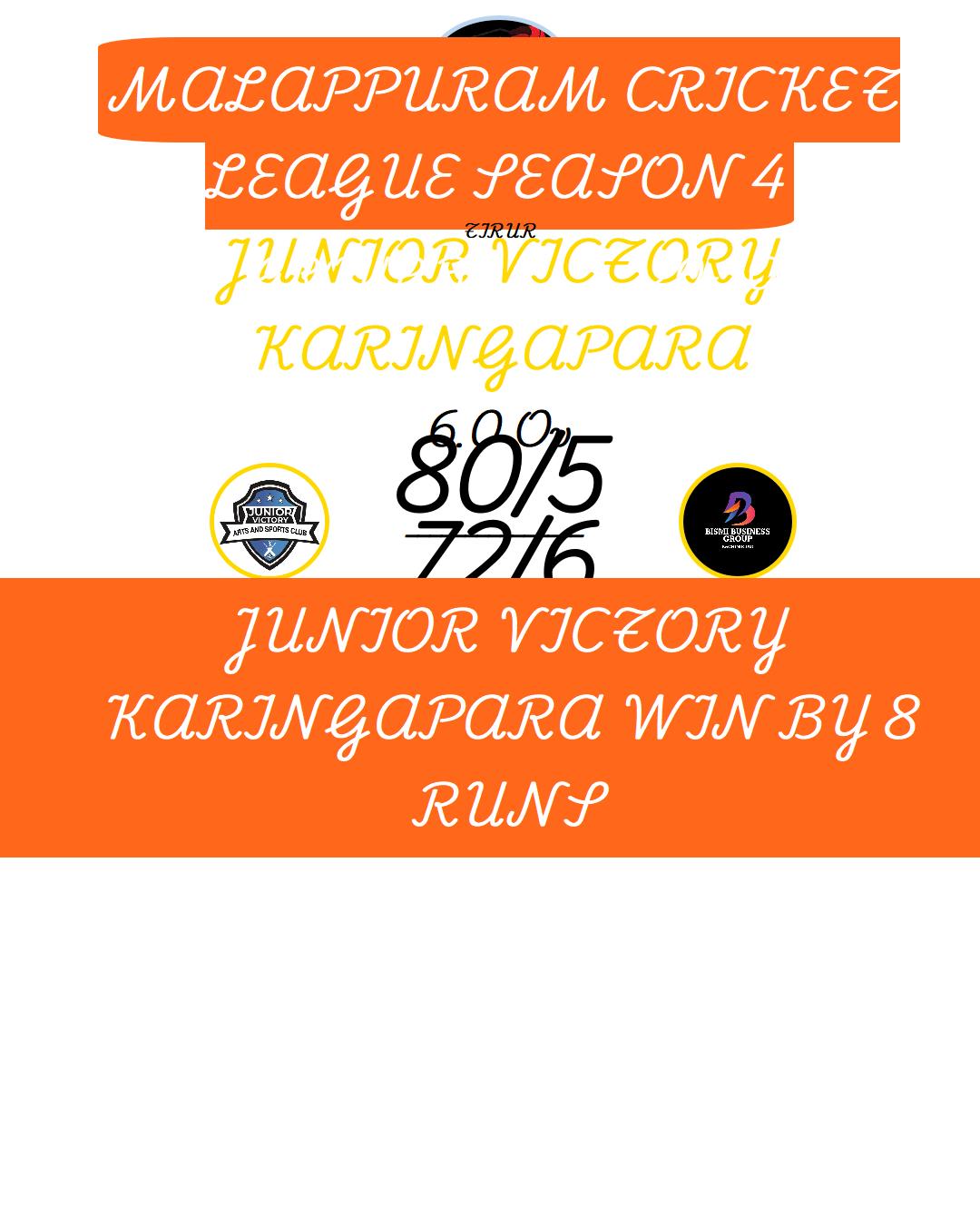 JUNIOR VICTORY KARINGAPARA WIN BY 7 WICKET