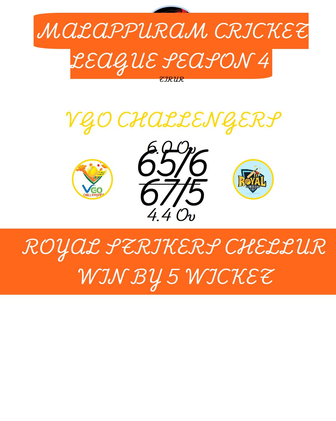 ROYAL STRIKERS CHELLUR WIN BY 8 RUNS