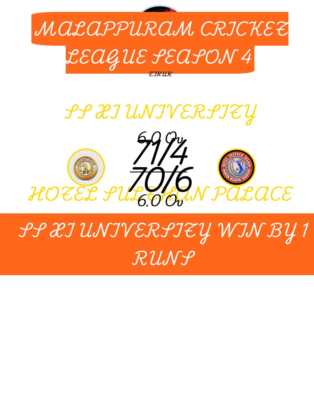 SS XI UNIVERSITY WIN BY 1 RUNS