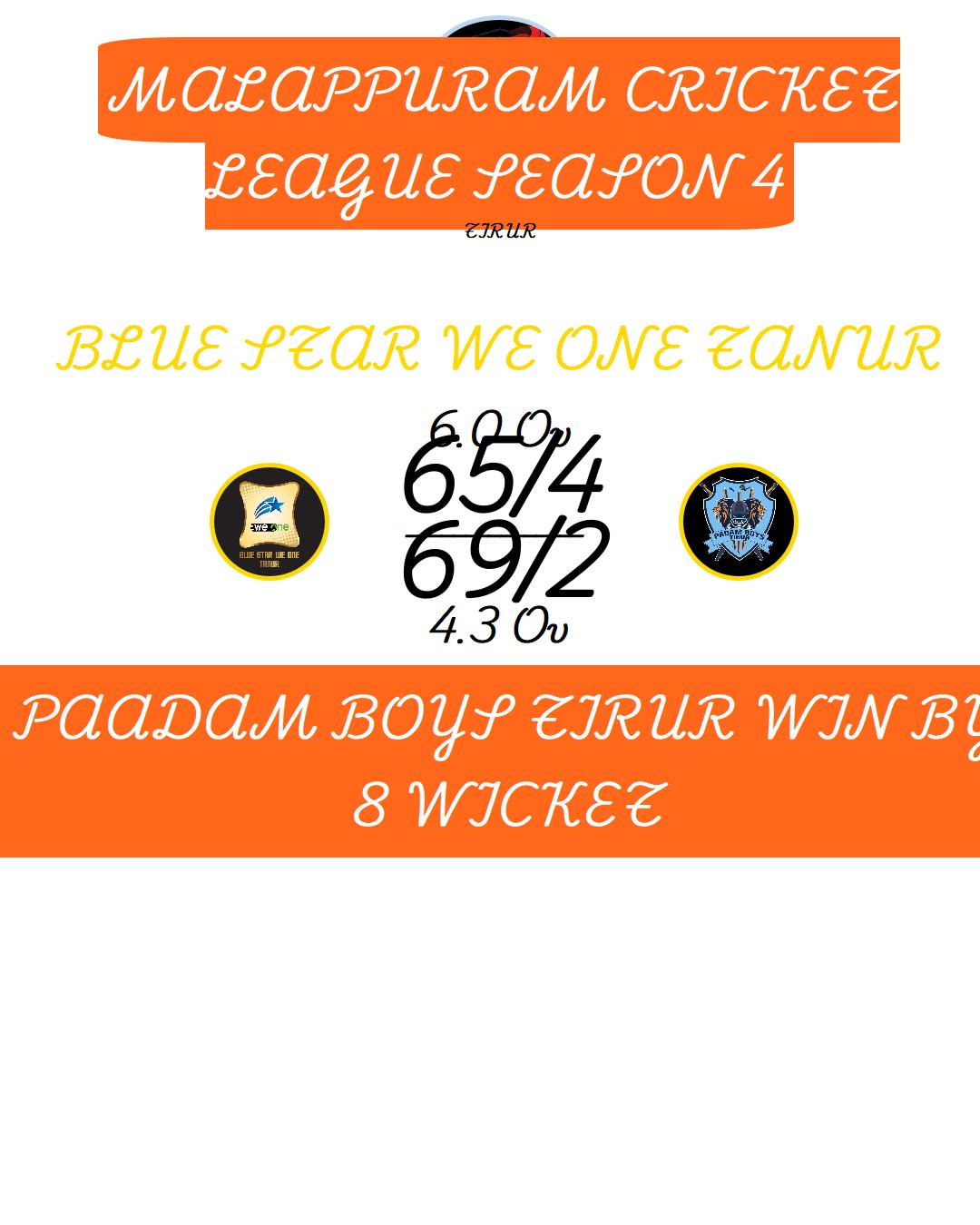PAADAM BOYS TIRUR WIN BY 8 WICKET