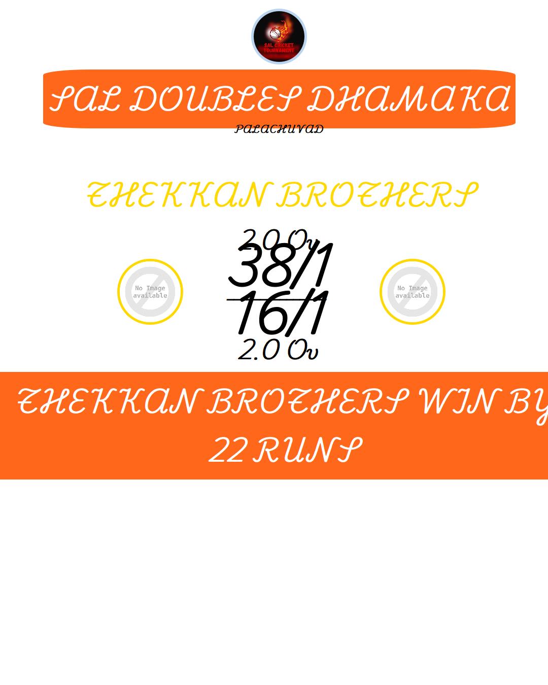 THEKKAN BROTHERS WIN BY 22 RUNS