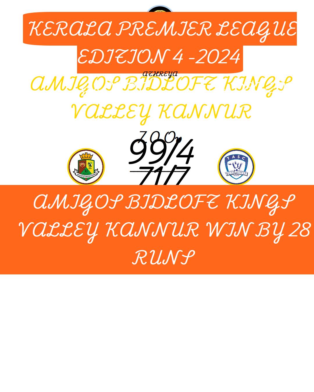 AMIGOS BIDLOFT KINGS VALLEY KANNUR WIN BY 28 RUNS