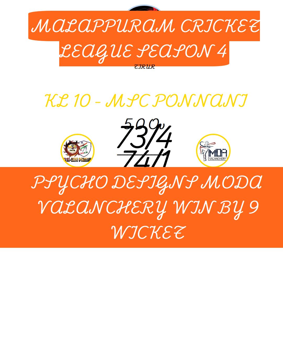 KL 10 - MSC PONNANI (MALAPPURAM CRICKET LEAGUE SEASON 4) MATCHES