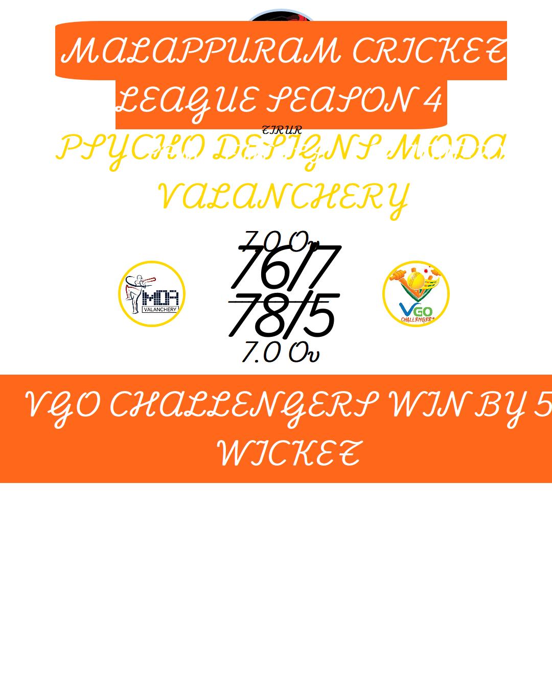 PSYCHO DESIGNS MODA VALANCHERY (MALAPPURAM CRICKET LEAGUE SEASON 4) MATCHES